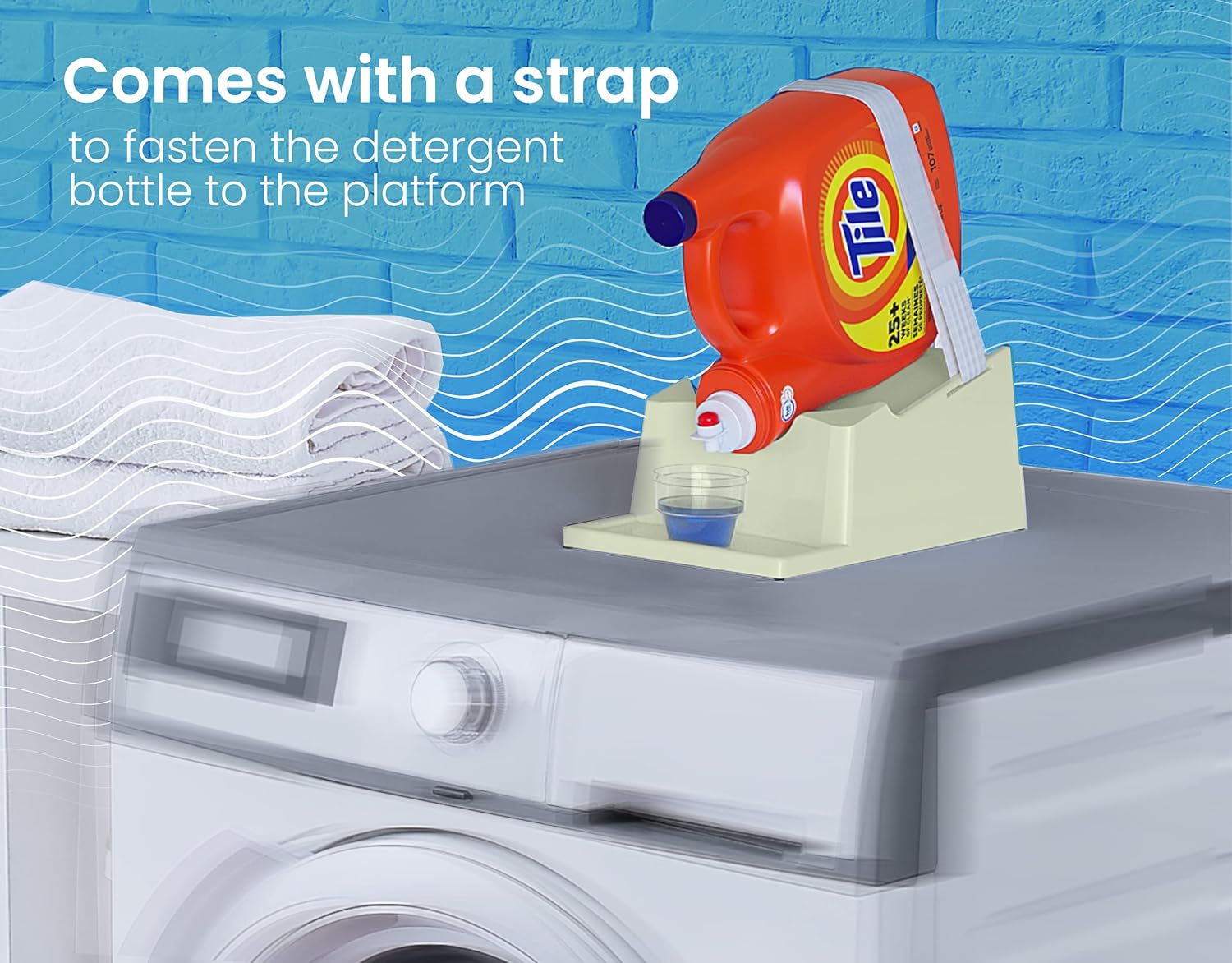 - [Safe Attachment:] The laundry detergent shelf or holder features a secure strap that firmly attaches and ensures your detergent bottle stays in place and minimizing the risk of accidental falls and spills.