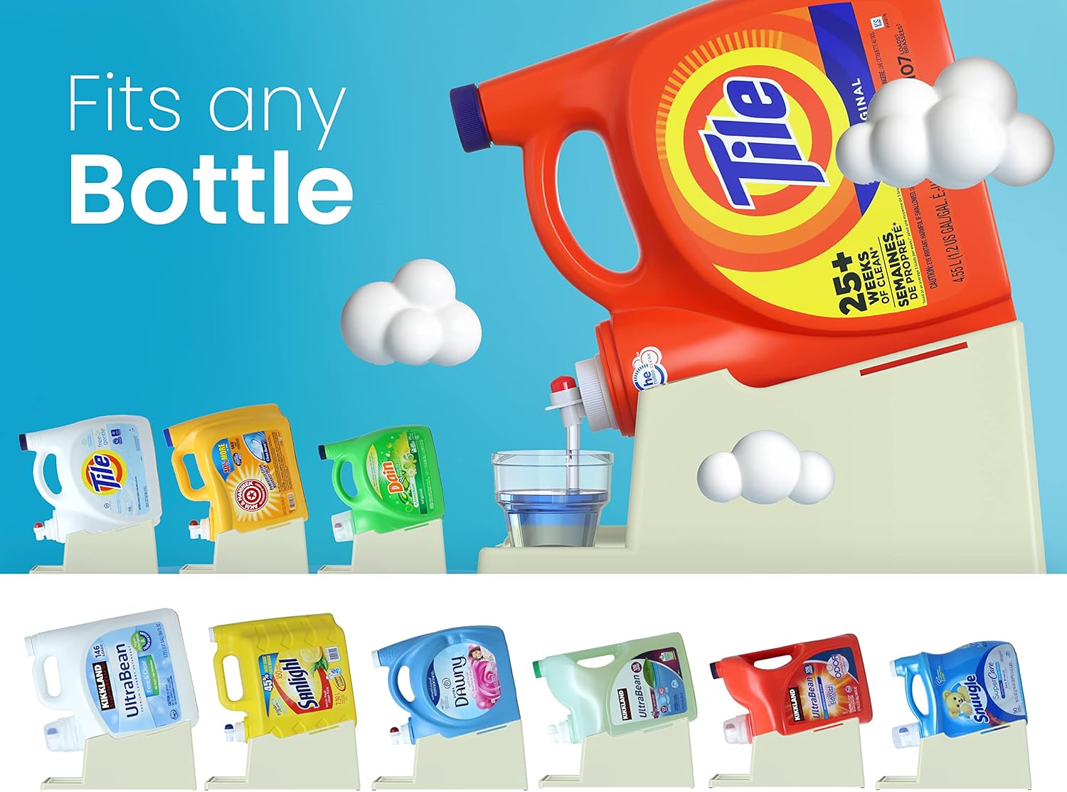 - [Versatile Fit:] The liquid laundry detergent holder station's optimal size (12.2"L x 7.9"W x 5.5"H) accommodates various bottle sizes, providing a perfect fit for most detergent containers without taking up too much space. (Laundry Soap, Cup, and Bottles NOT Included)