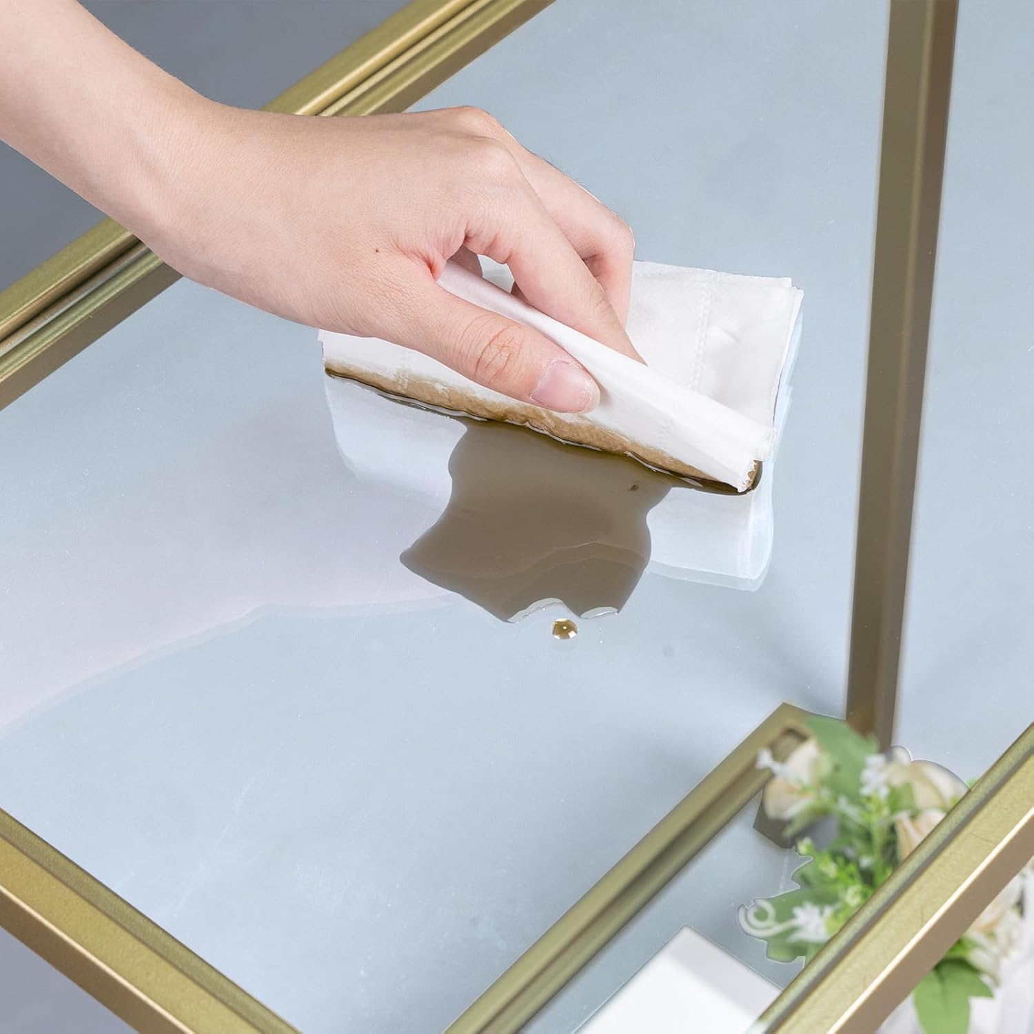 - STURDY: The gold side table is made of high-quality metal frame and sturdy glass, thickened metal frame legs provide stable support. These clear bumper pads under the glass of the rectangular coffee table can effectively protect the glass from being scratched, and the equipped foot pad can prevent the floor from being scratched.