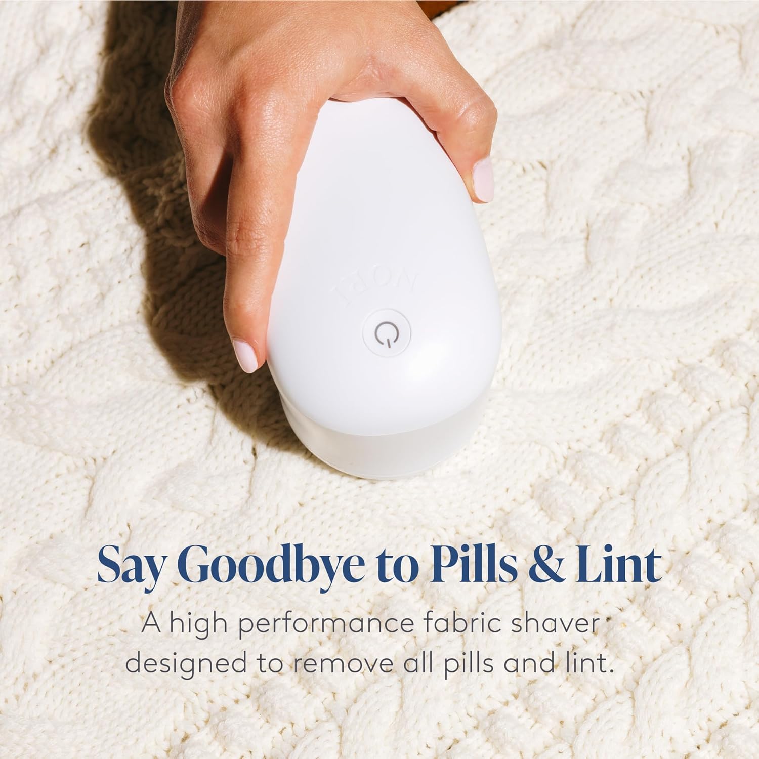 Nori Trim Fabric Shaver - Lint Remover for Clothes & Furniture Couch Pilling - Sweater Pill Remover - Clothes Shaver with 6 Precision Blades - Wireless and Rechargeable - White