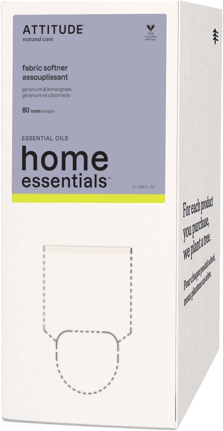 ATTITUDE Fabric Softener with Essential Oils, Vegan, Plant and Mineral-Based Ingredients, HE, Bulk Refill, 80 Loads, Geranium and Lemongrass, 67.6 Fl Oz