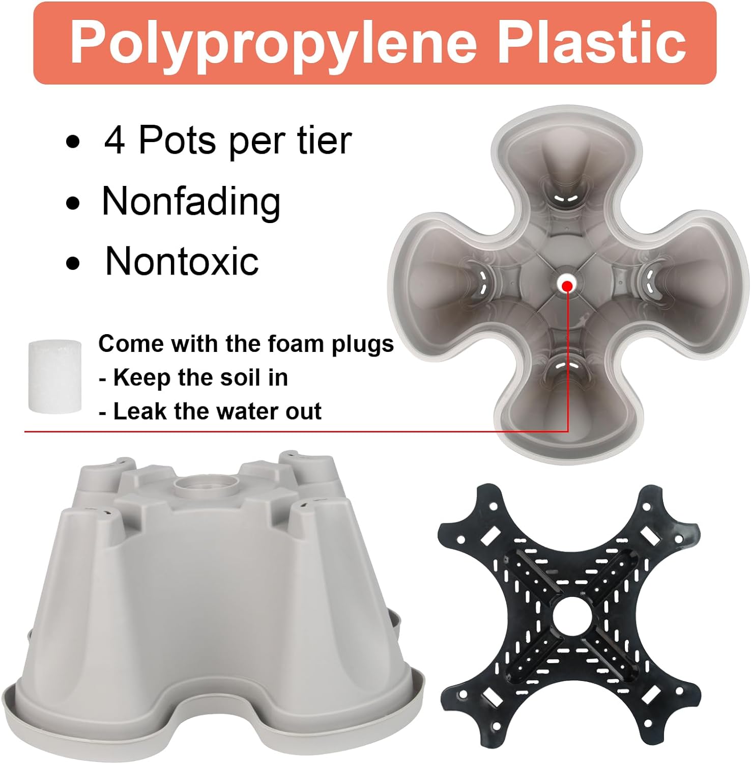 DUNCHATY Stackable Vertical Garden Planter, 7 Tier Herb Planter Pots, Indoor/Outdoor, Gray