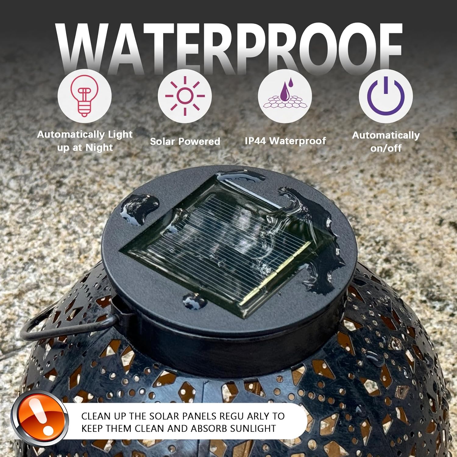 2 Pack Outdoor Solar Lantern Lights, Waterproof Tabletop LED Moroccan Lanterns, Hanging Metal Decorative Garden Lights for Patio, Lawn, Porch, Backyard