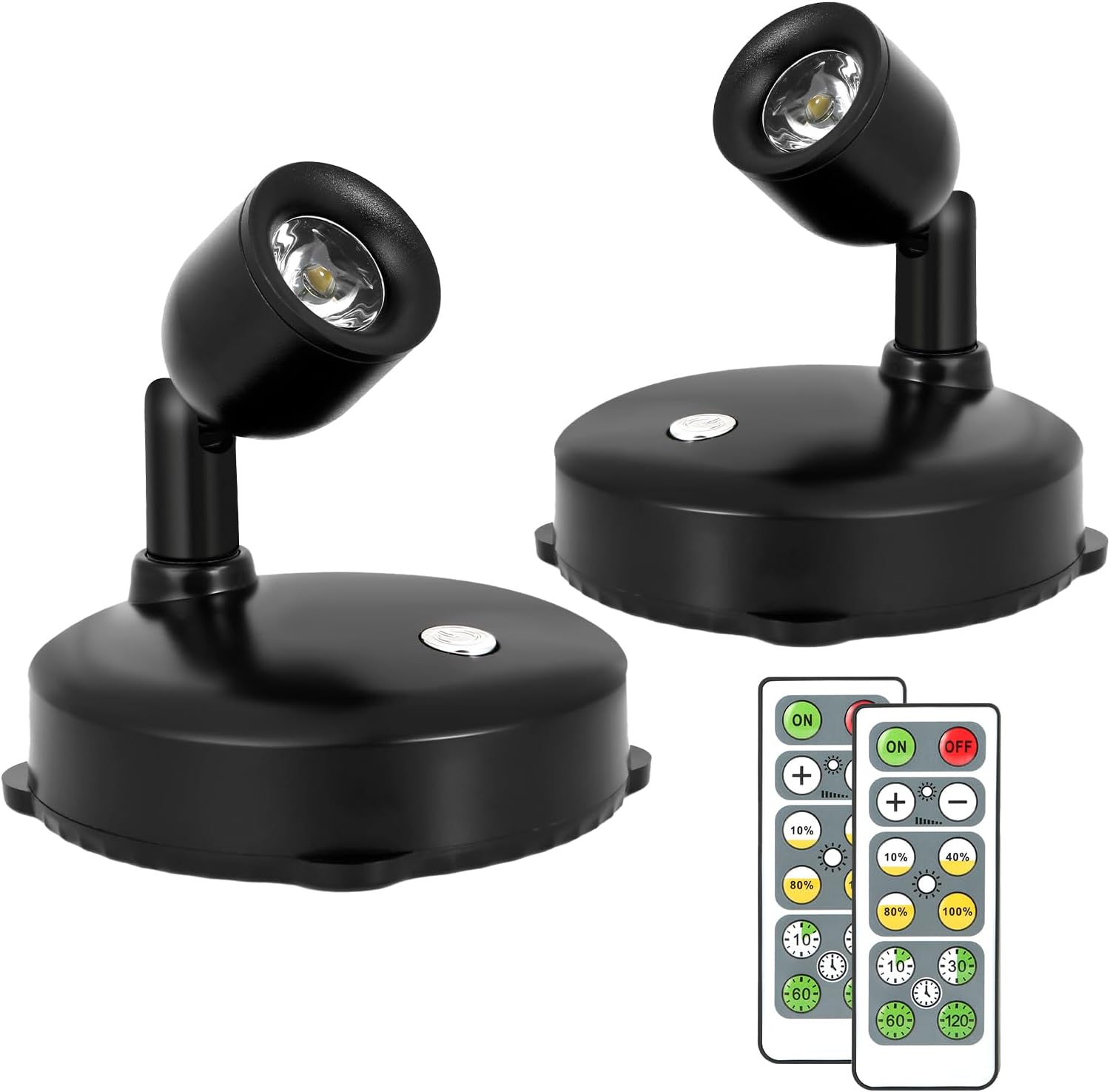 Cordless Spotlight Battery Operated, LED Plant Light, Dimmable Accent Light with Remote, Indoor Display Up Lighting for Picture Photo Tree Dartboard Wall Decor Painting Artwork Portrait