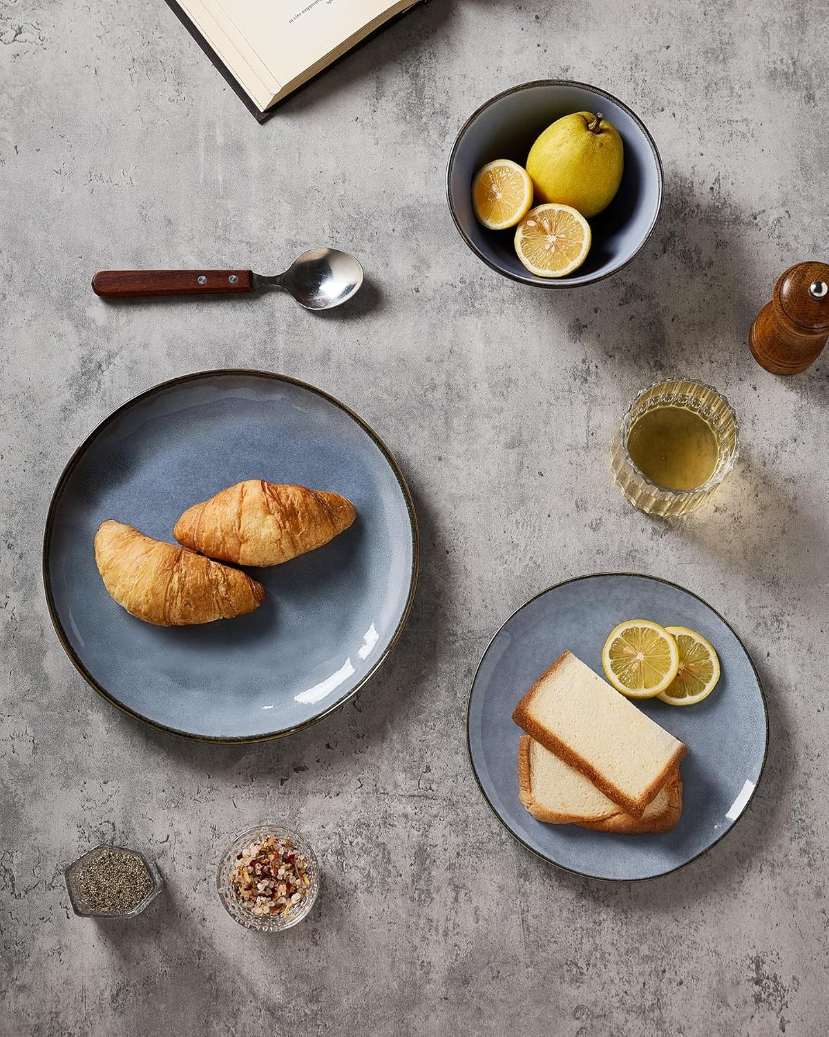 - 【Sturdy and Enduring】Ocean Series tableware set is made of premium stoneware, which is fired by high temperature and mix of all-natural clays. Each piece is sturdy and enduring