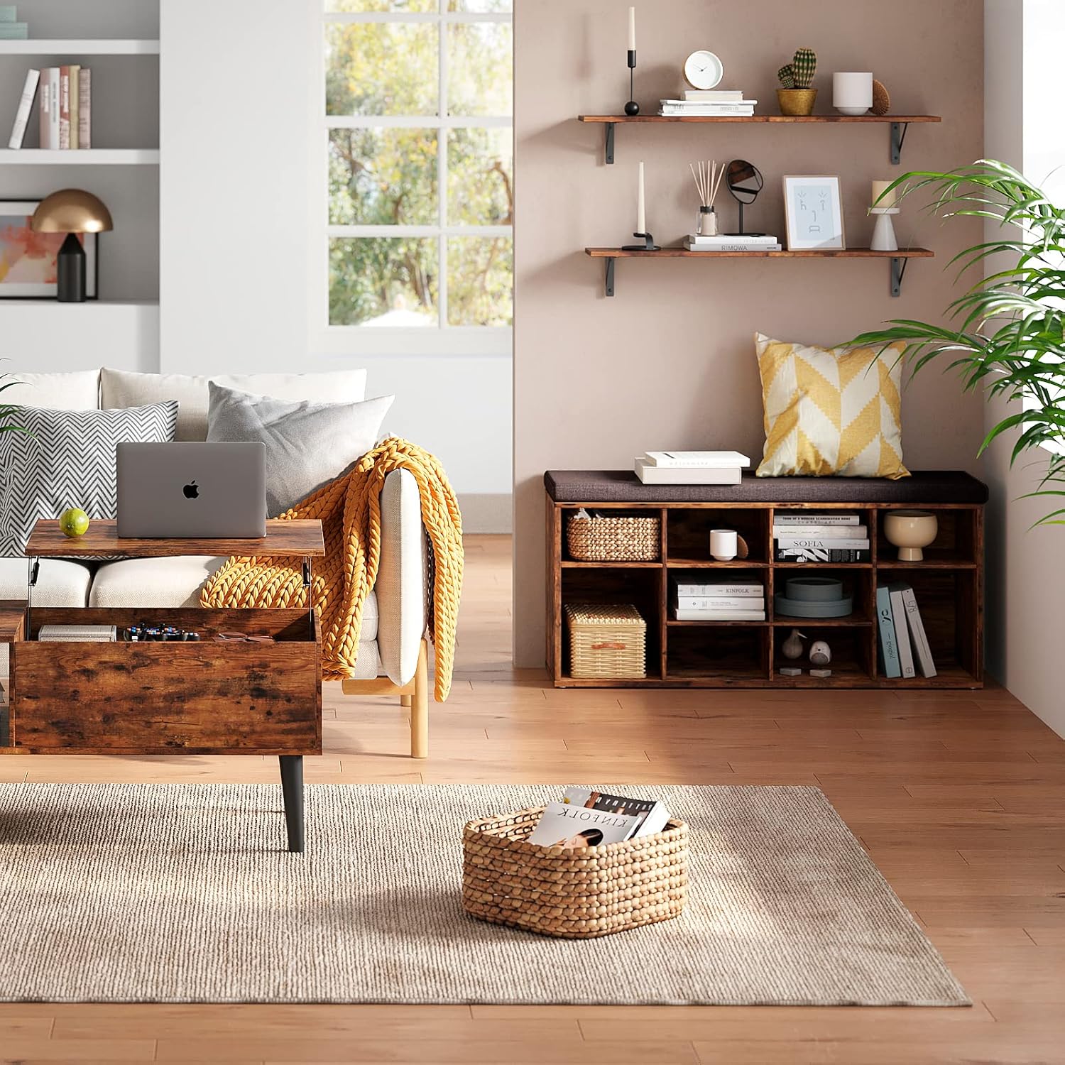 - 【Perfect Home Decor】Triangle iron bracket, with super stability and elegant simplicity, never out of date. Rusticity wood grain and retro color embellish the home decoration, making your home full of modern and elegant. Create eye-catching areas by presenting well-distributed small-scale space. Enjoy a graceful life and feel the art of home easily in the perfect combination of smooth lines and heavy duty metals