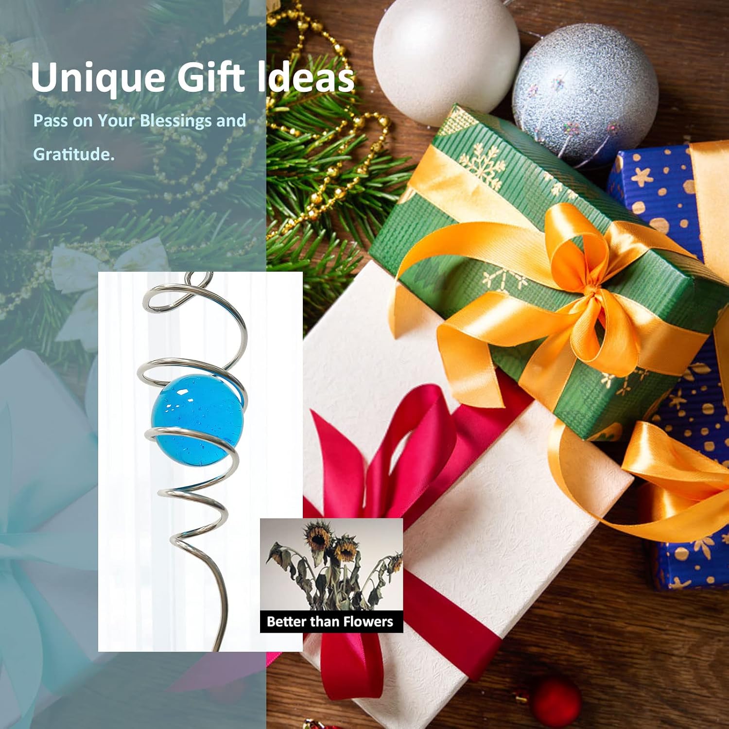 - 【Perfect Gift Choice】This unique spiral gazing ball comes in a beautiful gift box that will save you money,easy gift giving,is a perfect garden gift for women,mother,father,neighbors,friends,etc.As a perfect gift choice for Women's Day,Christmas,Mother's Day,New Year,Anniversary,Father's Day,Birthday,etc.This unique and beautiful and creative garden decoration is suitable for garden decoration lovers, home decoration lovers, garden decoration lovers,Mandala lovers, etc.).