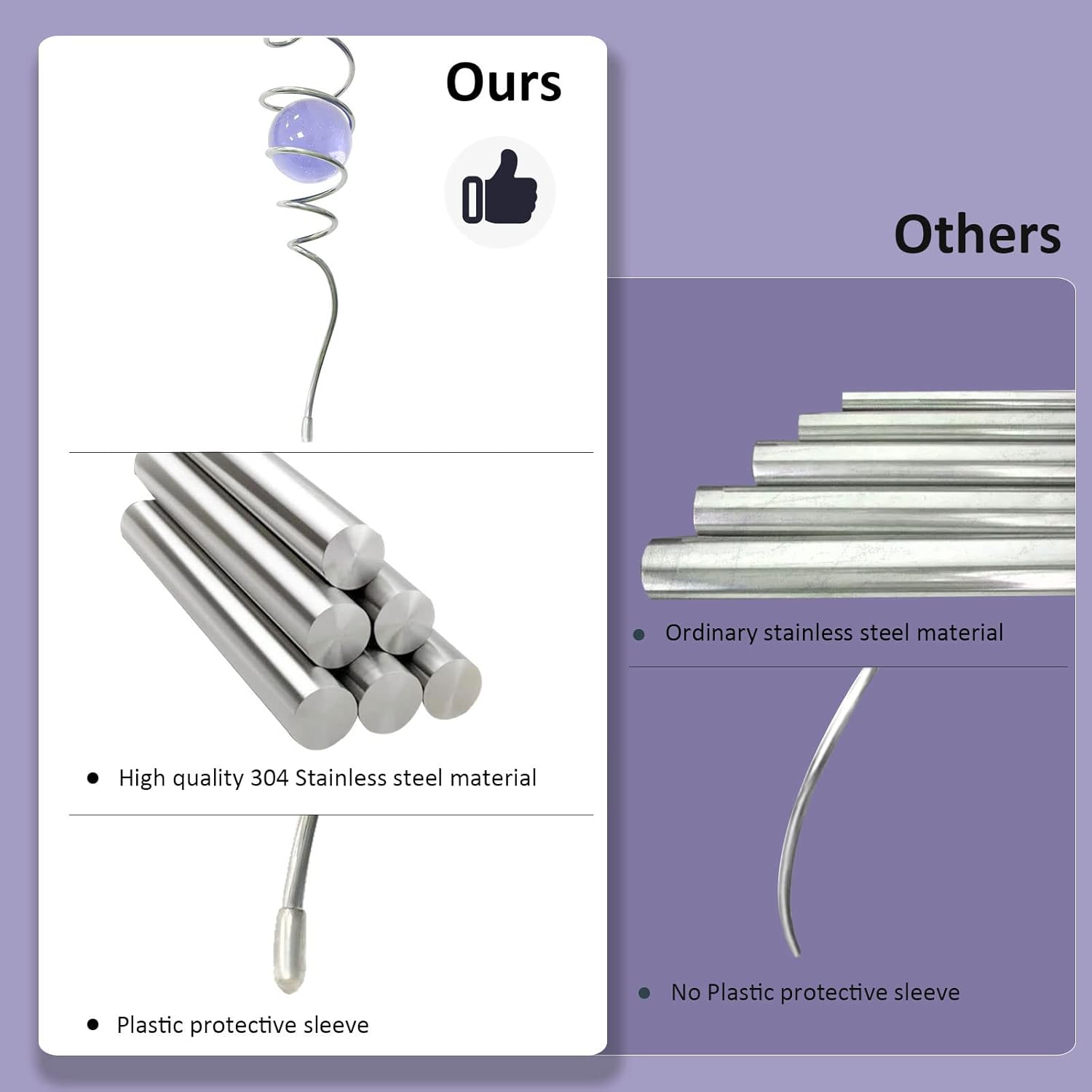 - 【High Quality】11inch height spiral tail made of #304 stainless steel wire,the 2inch colored ball made of pure solid color glass material,have good weather resistant,no fading under sunshine.Better quality than iron material with nickle plating and painting color glass ball in the market.