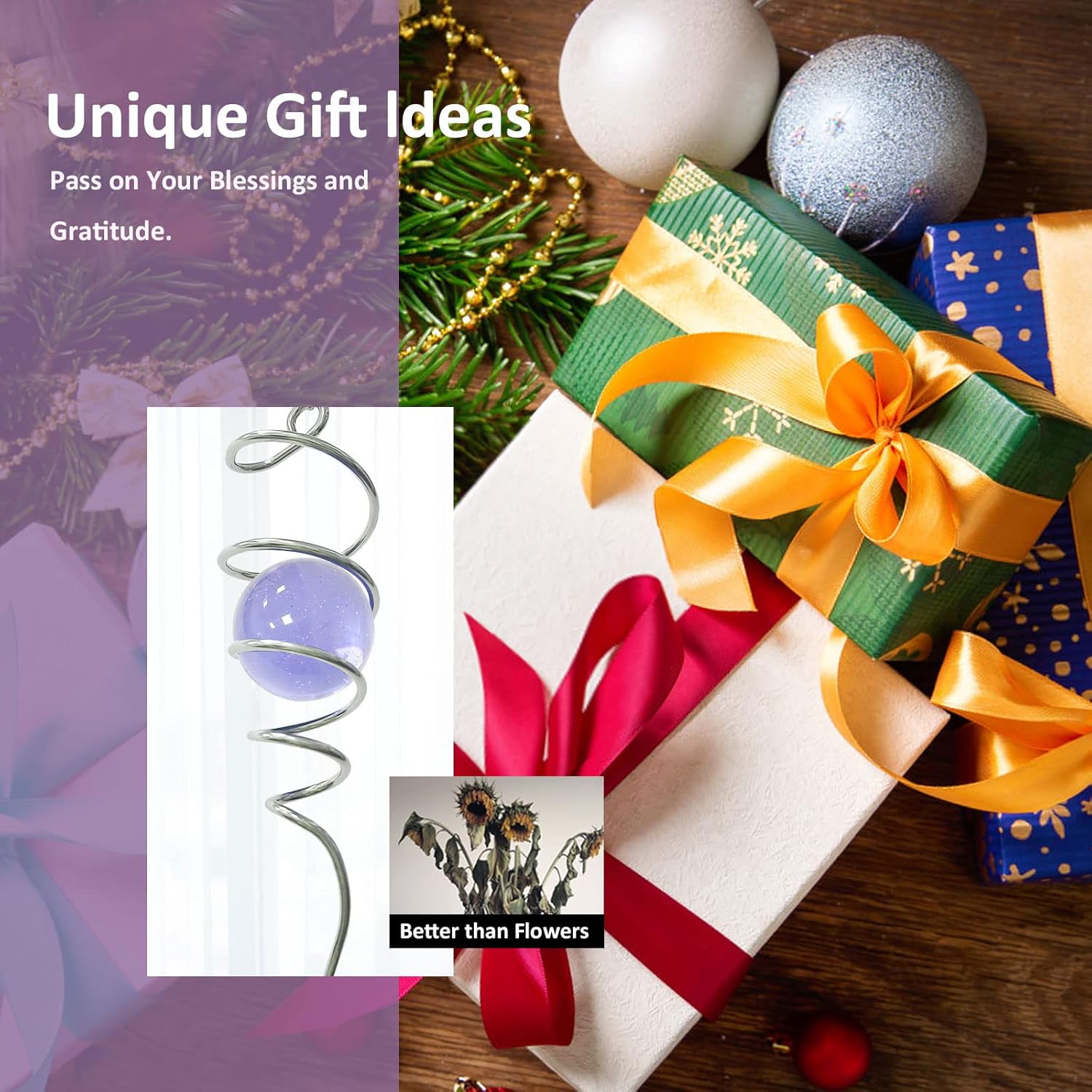 - 【Unique Spiral Design】The gazing ball spiral is an unique hanging ornament ,Also it can help to stabilize 3D wind spinners or yard decor from swing when it rotate.When the spiral tail rotates to the left, the glass ball seems to move upwards,when the spiral tail rotates to the right, the glass ball seems to moves downward,the glass ball seems to like floating and dancing in air, presenting a magical optical illusion!