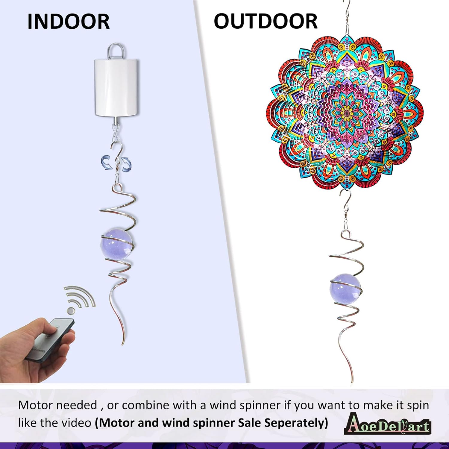 - 【Easy To Position】The Spiral can't spin by itself ,if you want to make it spin like the video ,need add 1pc motor (not include) ,or combine it with a wind spinner or any rotatable hanging ornament to help it rotate. Come with 1pc 2 inch colored glass orb(not paint), 1pc silver color spiral tail twister,and 1pc swivel hook accessory, ready to hang and enjoy.