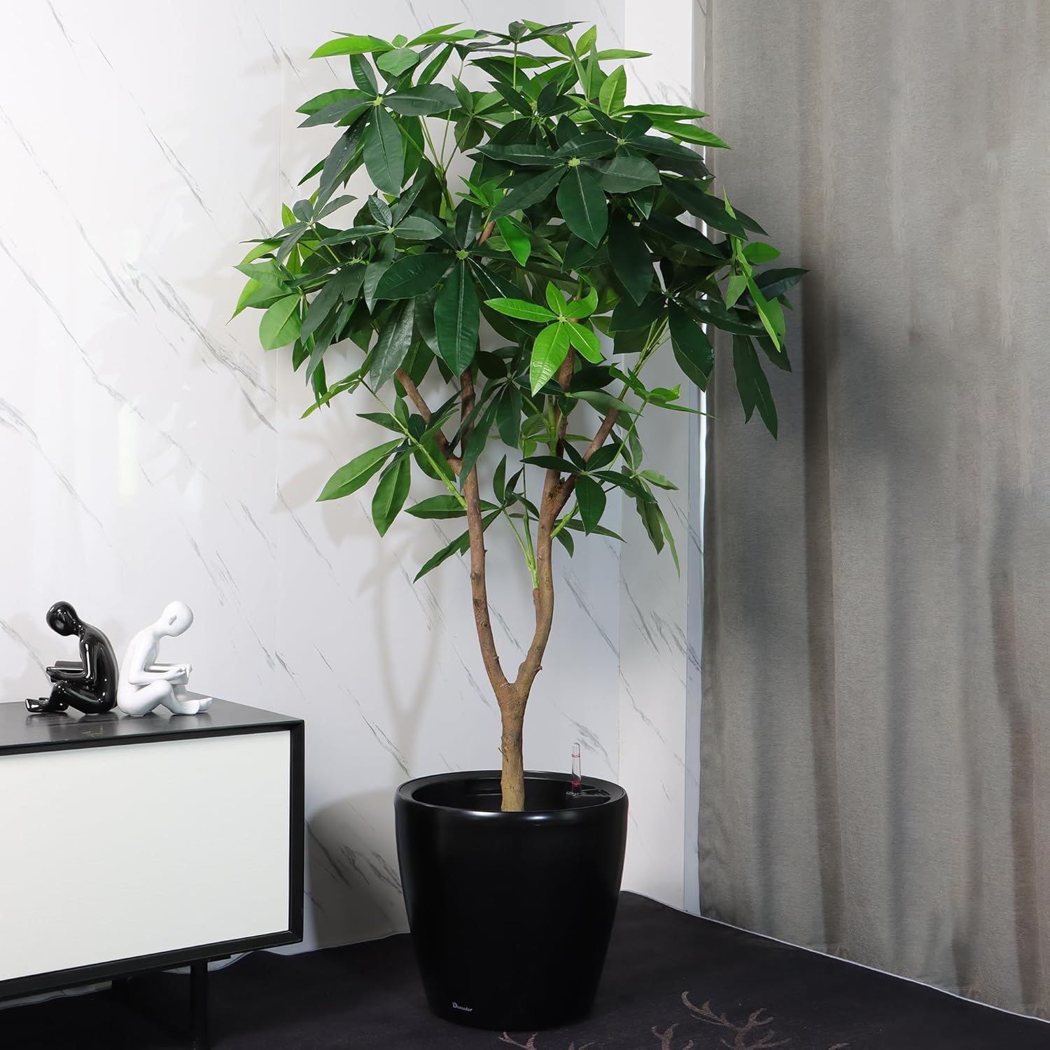 Dexceder 15x14 Self Watering Planter with Wheels Indoor Outdoor, Inner Pot Design, Thickened Large Floor Standing Flower Plant Pot with Water Level Indicator (Black Matte)