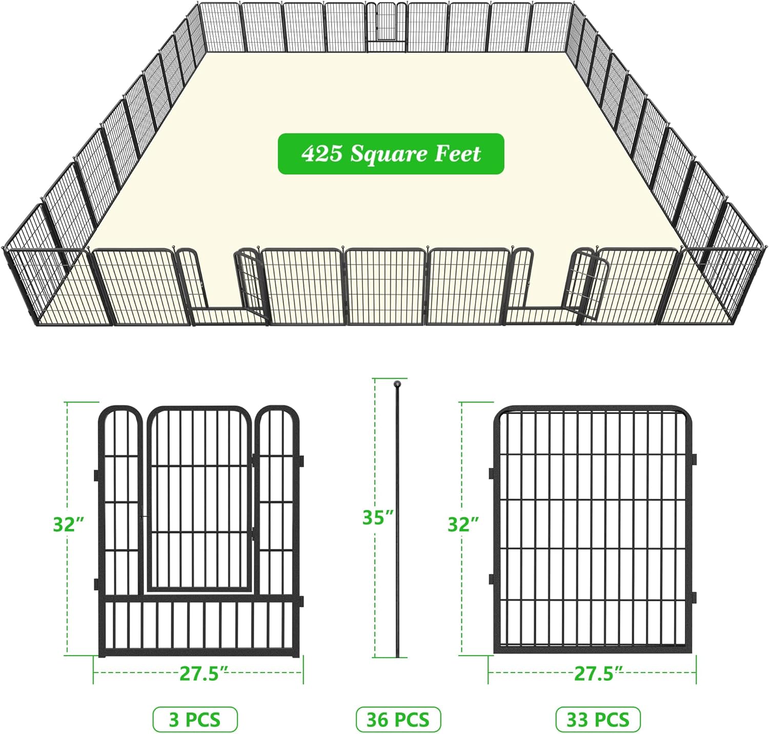 - Rust-proof & Sturdy Construction: Jhsomdr garden fence features double powder coated finish, rustproof, less maintenance, longer use. The metal fence panels are made of heavy duty iron and thick wire, no tearing, chewing, cracking and bending. The fence can work well for long time in bad weather