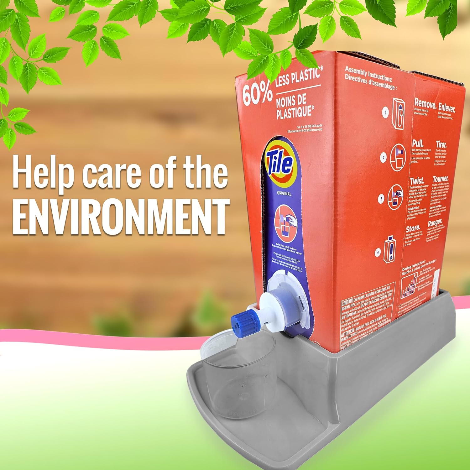 Skywin Laundry Detergent Holder For Eco Box Laundry Soap Dispenser with Easy-to-Store Package - Less Plastic Liquid Detergent Dispenser (Grey)