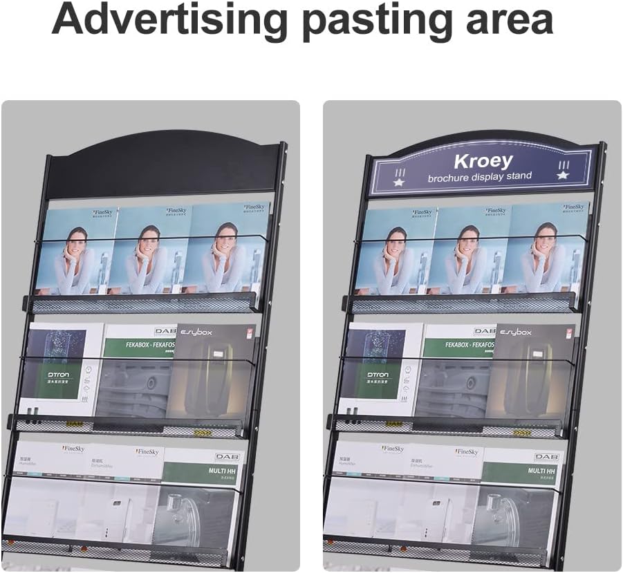 - GRERTER CAPACITY:The magazine rack has 4 large shelves-each shelf can display 3 booklets (A4) side by side.the header can overprint company logos and promotional slogans,Behind the shelf offers plenty of space for documents and manuals, refill the documents and magazines taken from the shelf at any time.