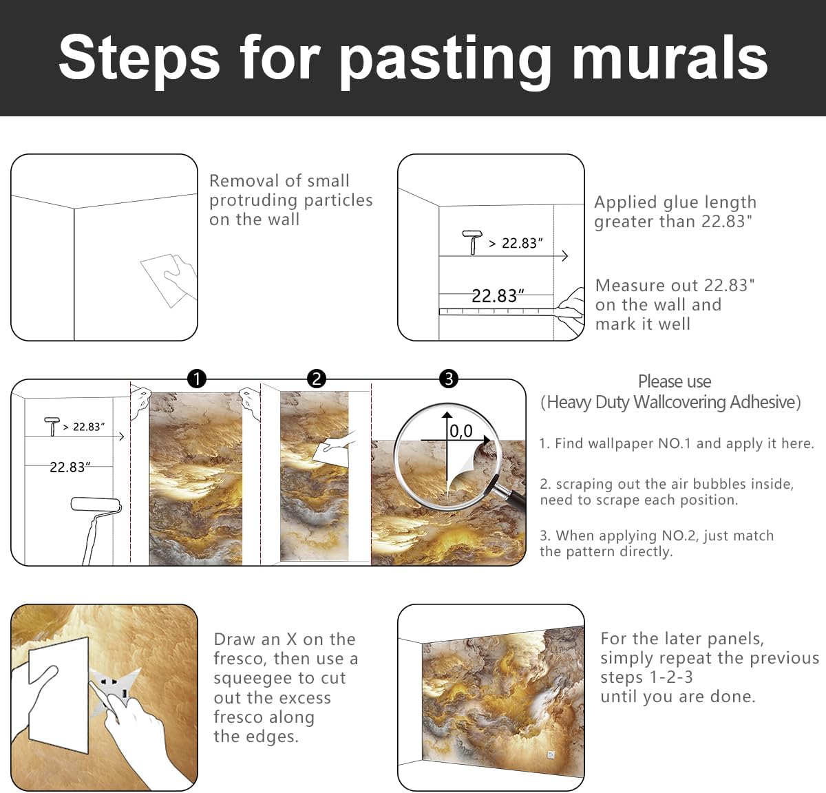 - 💕This mural installation does not need to overlap, just match in order according to the marked order below the panel.
