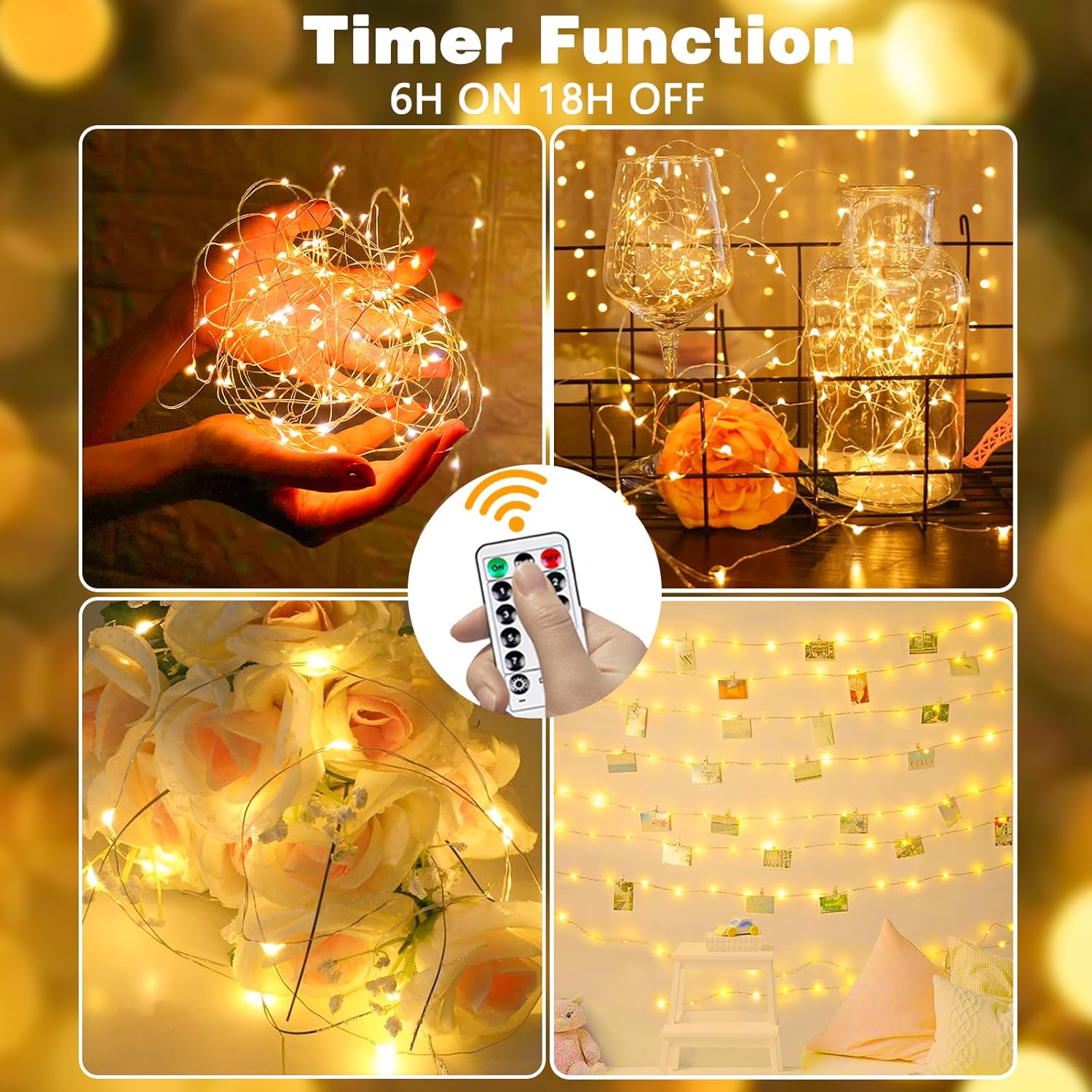 - Timer Function & Remote Controlled & Dimmable & Memory Function: You can use the remote control to get multifunction โ turn on/off the lights, 8 lighting modes and timer function (6H ON 18H OFF) and adjust the brightness (10 brightness levels). The mini led lights for crafts will meet all your different moods and demands and it is very easy and convenient for use.