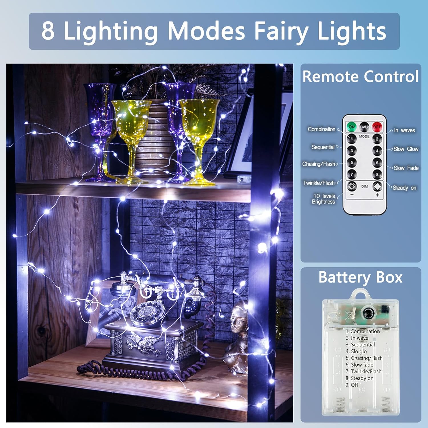 - Widely Application For Occasion Use: The fairy lights with remote perfect for Bedroom,Christmas,holiday, Halloween Parties, wedding, garden, patio,home and create a warm, happy, romantic atmosphere. With light weight and small size, it is portable and convenient for any romantic trip or camping. When use outside, please protect the battery case from water or rain