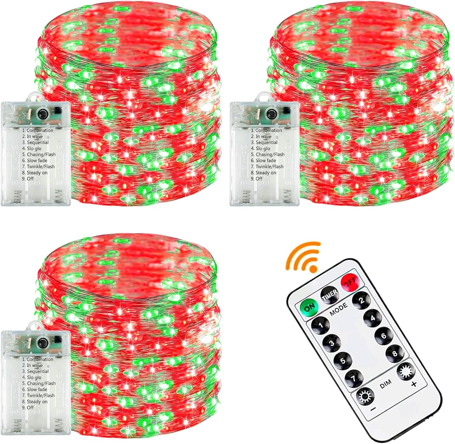 3 Pack Fairy Lights Battery Operated with Remote Control Timer, 26 FT 80 LED String Lights Outdoor Indoor, 8 Mode Twinkle Lights for Christmas Party Wedding Birthday Bedroom Décor (Red and Green)