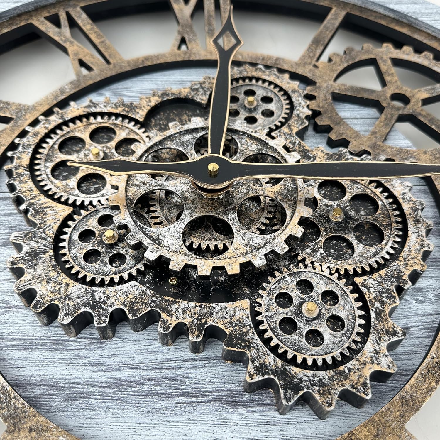 HOIBAI Large Wall Clock, Wall Clocks for Living Room Decor Farmhouse Vintage Rustic Kitchen Wall Decor Vintage Roman Big Oversized Wall Clock for Home Bedroom House Office, Moving Gears Clock