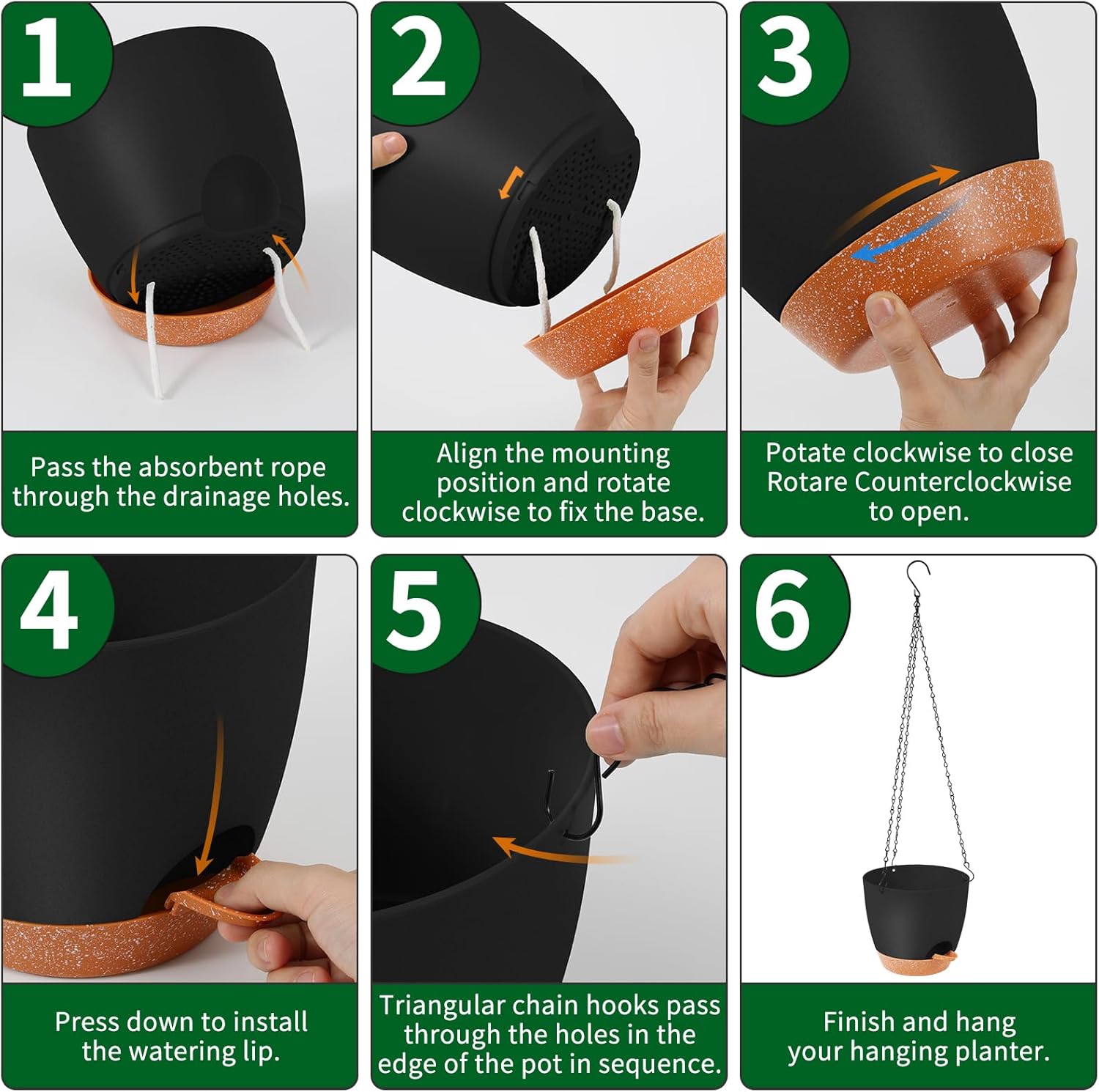 GARDIFE Hanging planters for Indoor Plants, 8 inch Hanging Planter, Self Watering Plant Pot, 2 Pack self Watering Hanging Planter, Black
