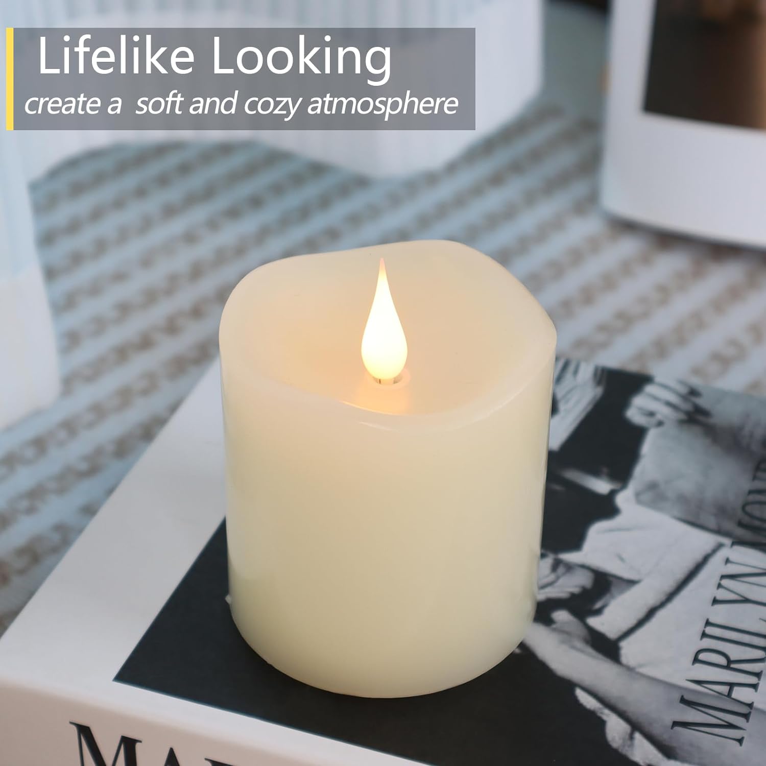 Flameless Candles Battery Operated with Timer, 3D Moving Flame Flickering, Last 600+ Hours Battery Candles, 3" x 3" Ivory Real Wax Electric LED Candle for Wedding Party Decorations