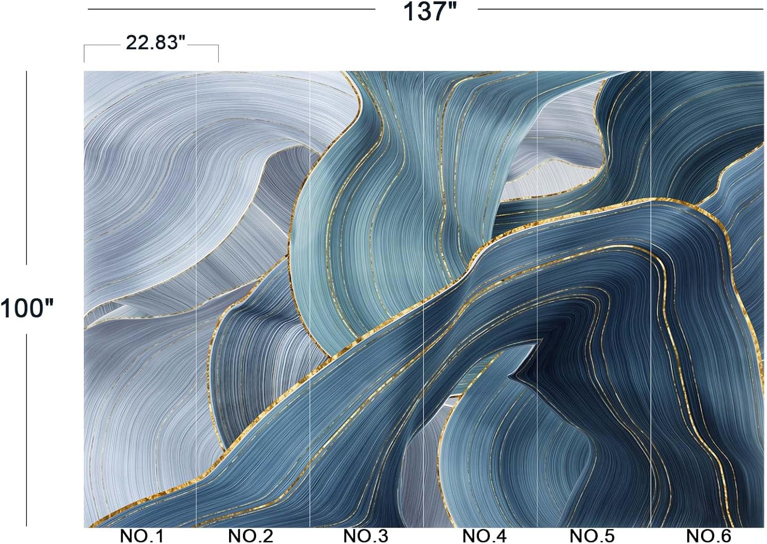 - The size of the wallpaper is 137" wide x 100" high and divided into 6 panels.