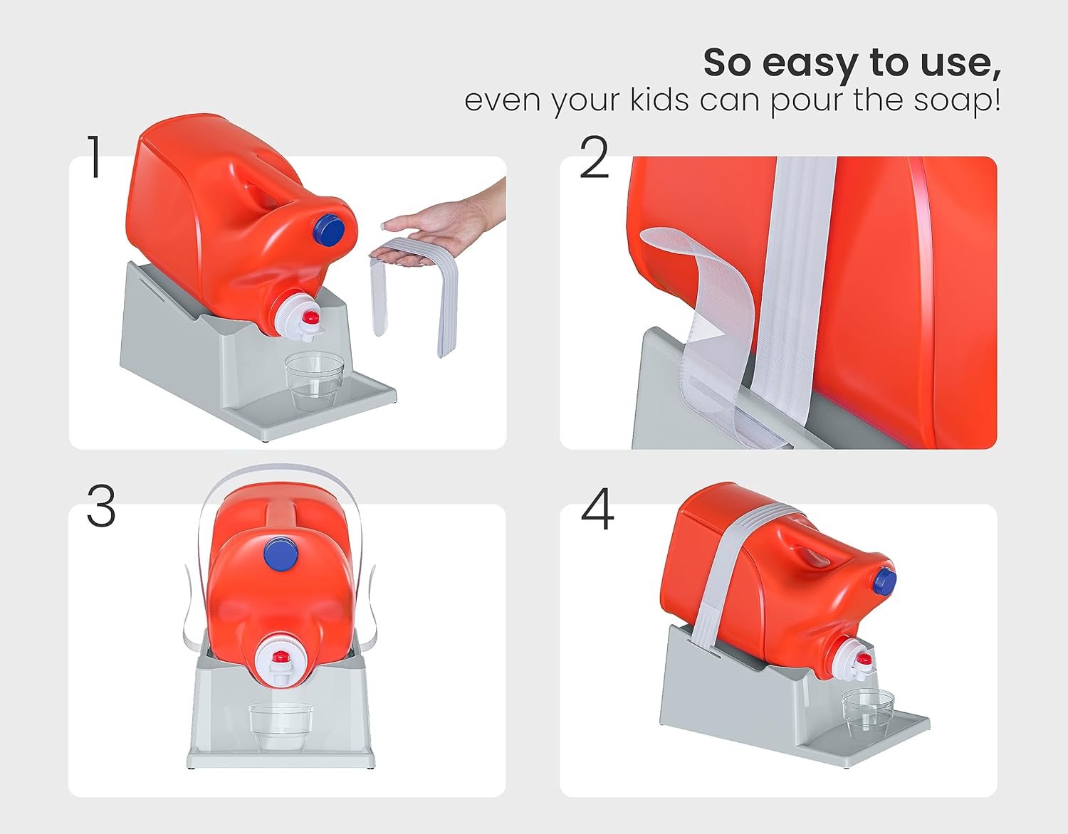 - [Effortless Soap Dispensing:] The angled design of our laundry soap organizer allows for easy soap pouring without the need to tilt or lift heavy detergent bottles, saving you time and effort during laundry.