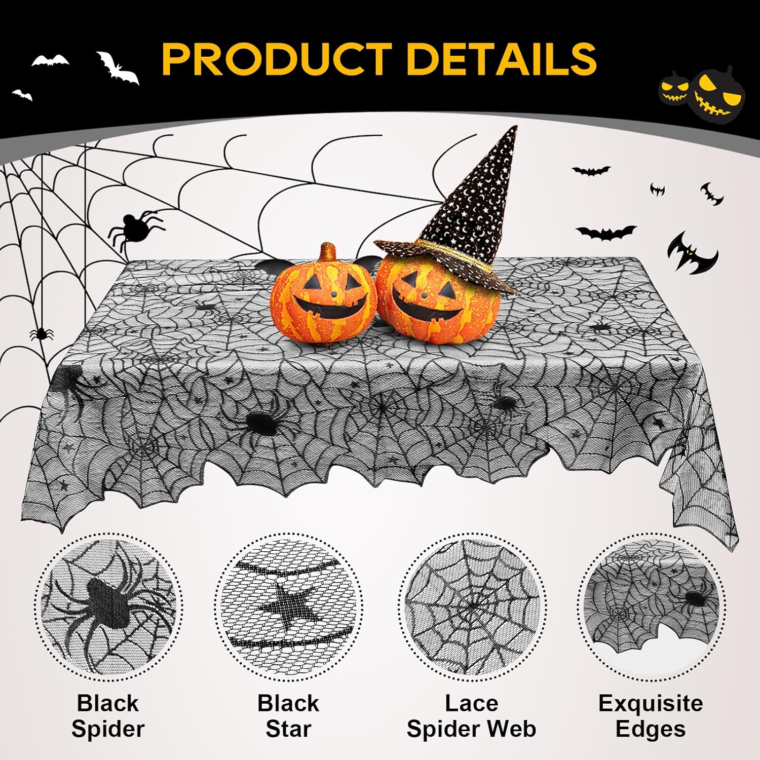 eZAKKA Halloween Table Cloth, 54" x 72" Spider Webs Tablecloths Black Tablecloth Lace Fabric Table Cloths Spooky Cover