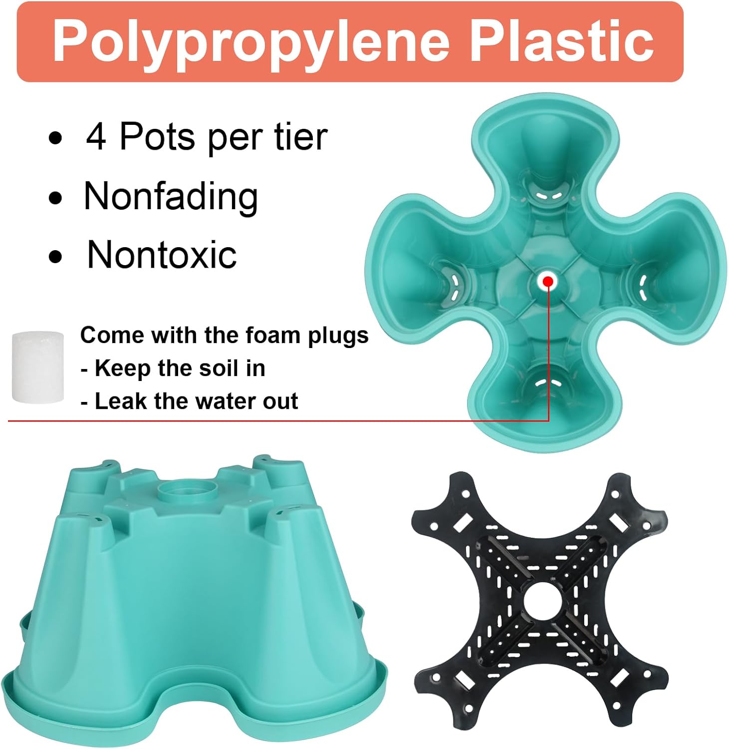 DUNCHATY Stackable Planter, Teal, 6 Tier Garden Tower, Self Watering, Indoor/Outdoor, with Garen Tool Set
