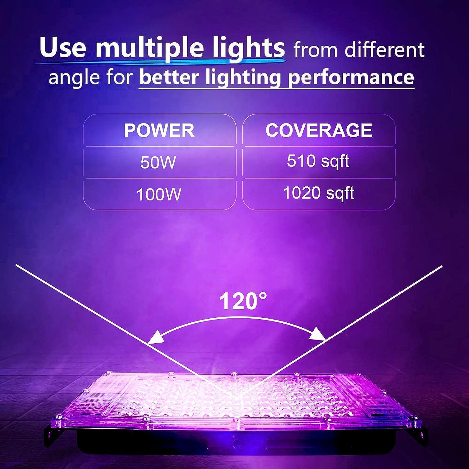 - 【120°reflective shell】Our 100W black light is equipped with a 120° ultra-high reflectivity reflector, which improves the efficiency of LED, reflects most of the invisible bulb, and projects with a wide angle to cover more areas, which is convenient for you to unfold in the dark activity.