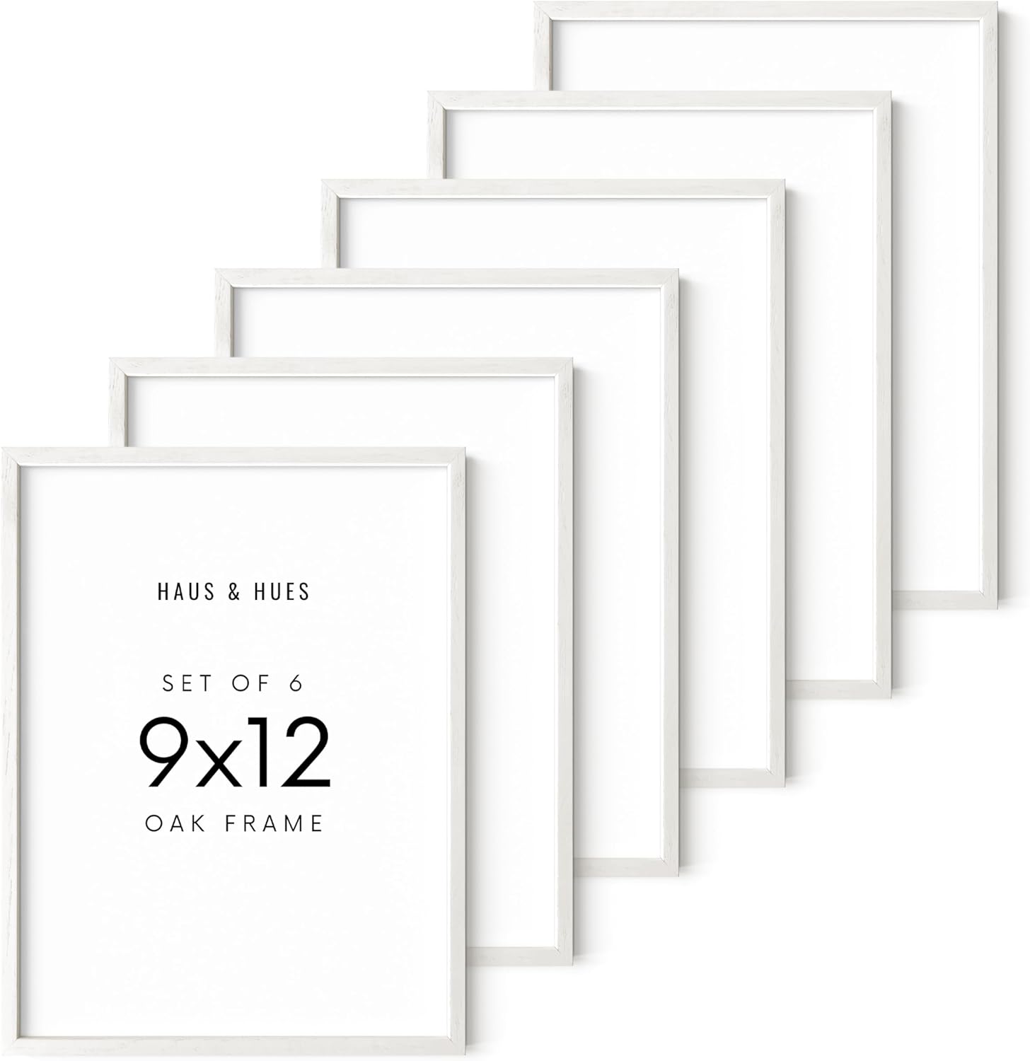 HAUS AND HUES Set of 6 9 X 12 Picture Frames for Wall - 9x12 Frame Collage, 9x12 Picture Frame Sets Wooden Frames, 12x9 Picture Frames in Bulk (White Oak Frame)