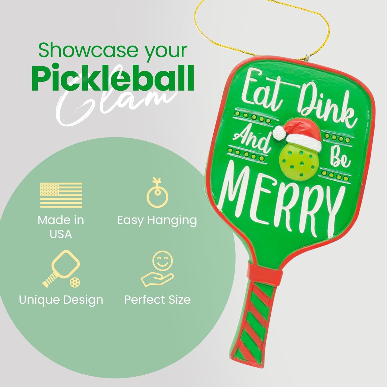 Eat Dink and Be Merry Pickleball Paddle Christmas Ornament, a US Family-Owned Business - Sportybella Pickleball Gifts Christmas Tree Decorations, Sports Enthusiast Pickleball Paddles Decor