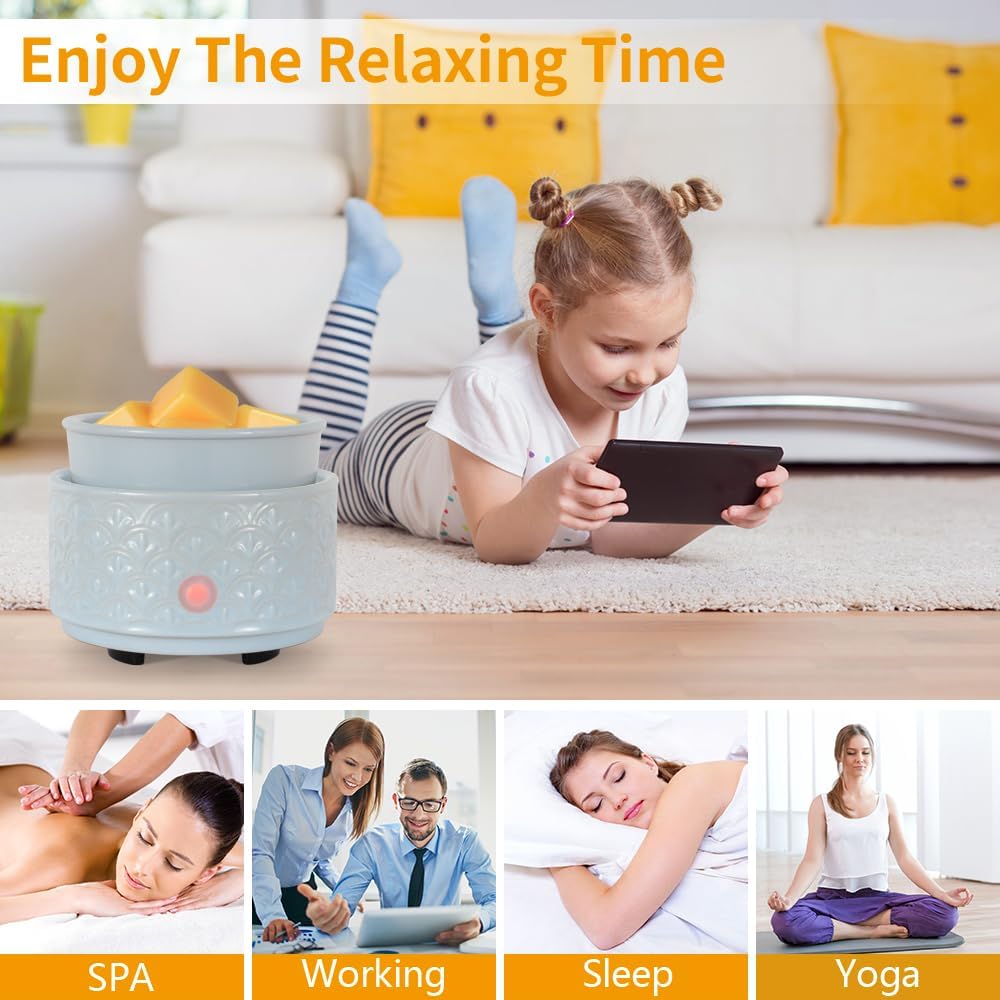 - 【Energy Saving& Safe】 Experience a safer and cleaner alternative to traditional candles. This ceramic wax melt warmer offers a flameless, soot-free, and pollutant-free way to enjoy your favorite scents.