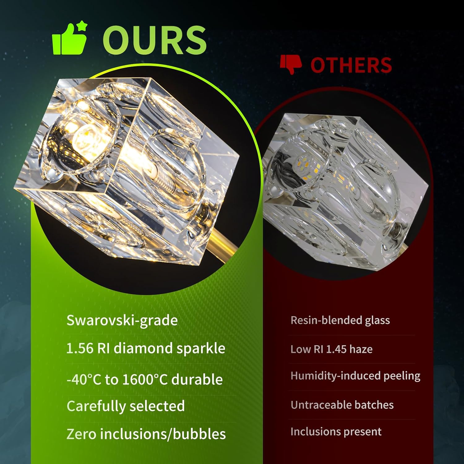 - 【Eays to install】This gold kitchen chandelier simply requires 8 crystal lamp shades to be installed in the gold light body, the gold rod is tightened, and the gold and white wire is connected to the ceiling.