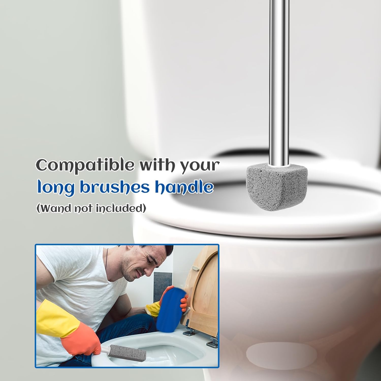 - Pumice Stone Pad for Toilet Cleaning:Works with Yingmore toilet handles designed to hold toilet scrubbing brushes. Test handle for secure hold before using pumice stone.(Only 10 packs pumice stone,the handle is not included)