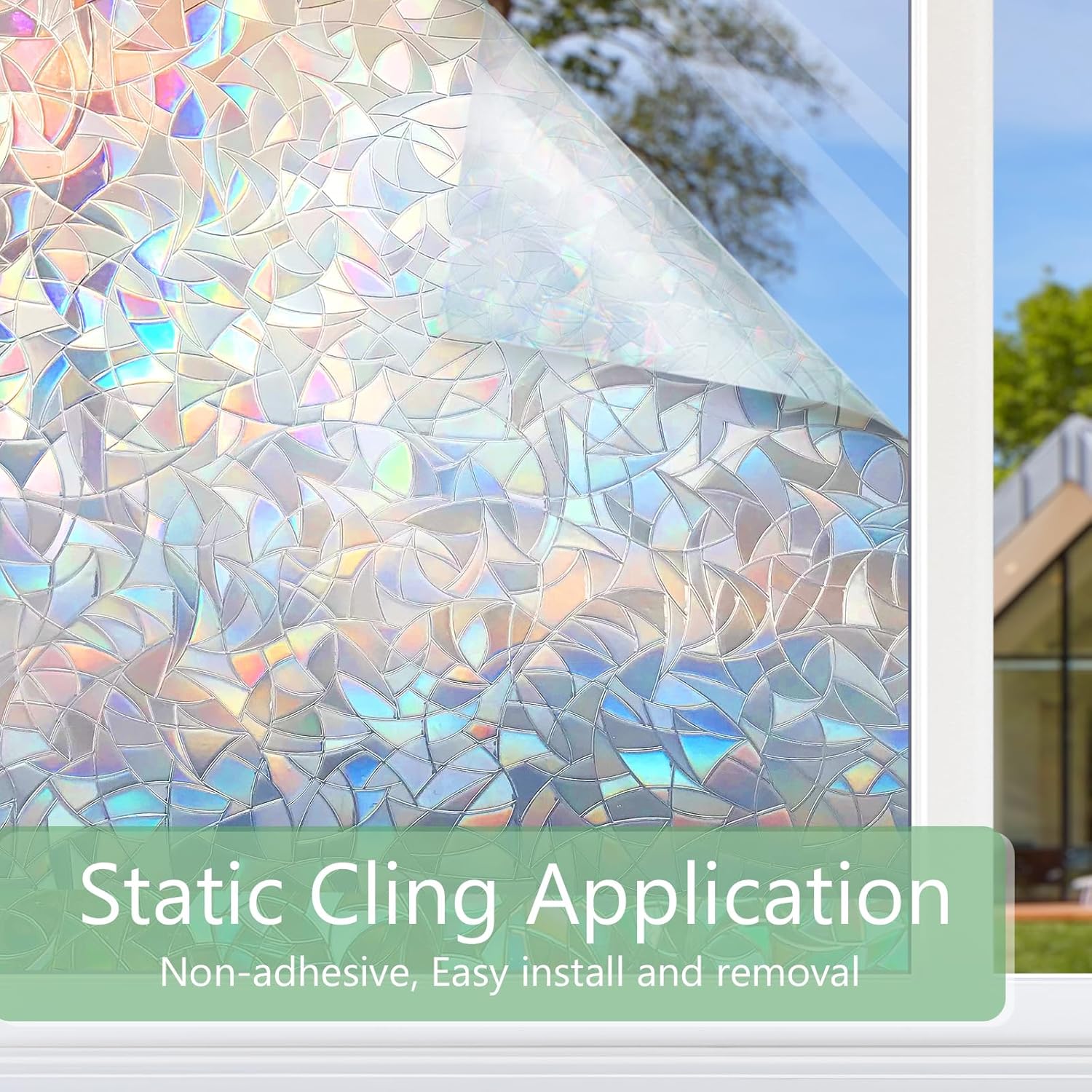 HIDBEA Window Privacy Film Static Clings, Rainbow Window Film, 3D Decals Non-Adhesive Window Vinyl Film for Home Door, 17.3 Inch x 6.5 Feet