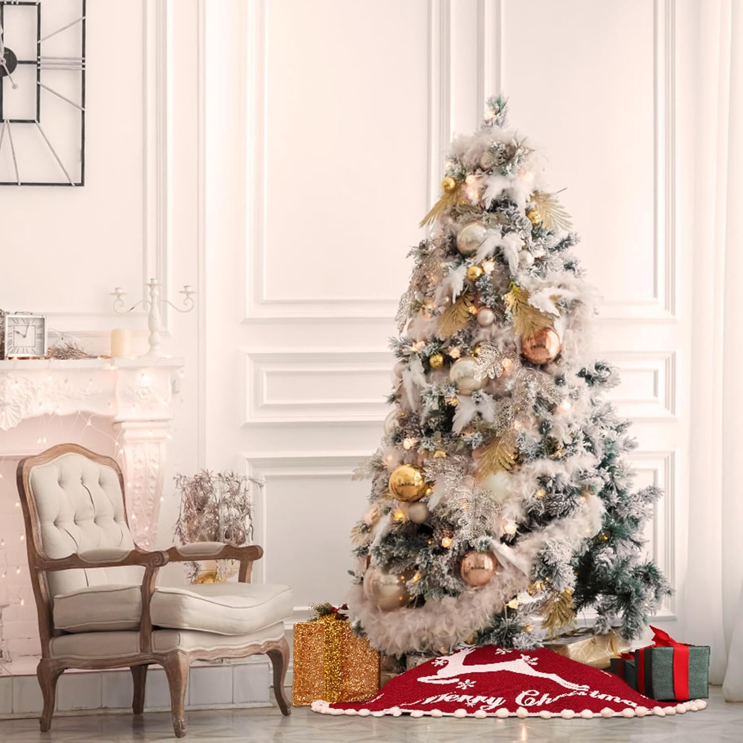 - Merry Christmas Tree Skirt:Our Christmas tree skirts is printed with elk and various sizes of snow patterns, as well as the words "Merry Christmas." The edges are adorned with small, fluffy balls, adding a festive touch to your Christmas tree. This 30-inch tree skirt is perfectly sized for most Christmas trees perfectly. Before making a purchase, please measure the diameter of your tree to ensure a perfect fit