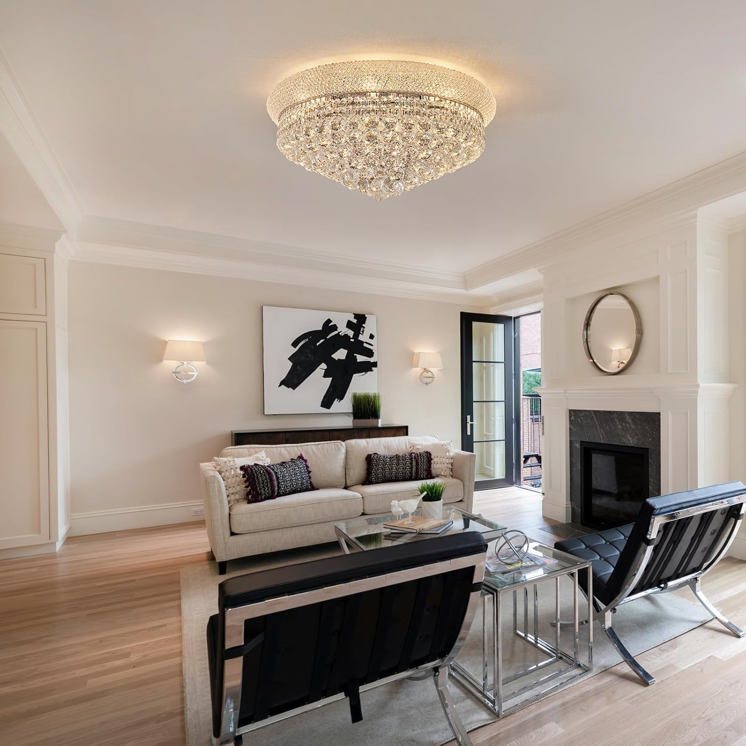 - 【Chandelier Size】The Flush Mount chandelier size is 12" H x 24" D. suitable for living room, dining room, Foyer, Entryway, Hallway, banquet hall, and central hall.