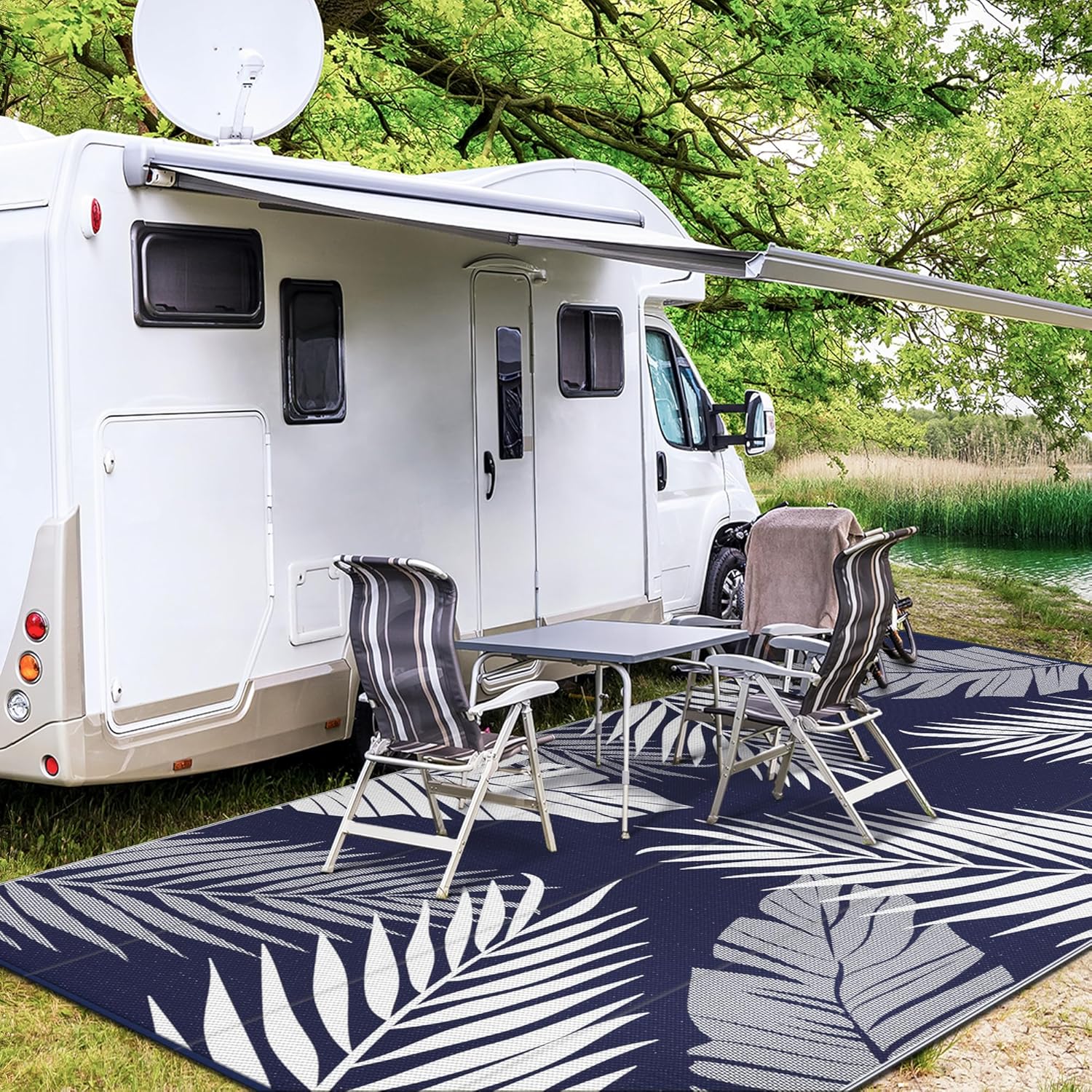 - Perfect Choice For RV Camping: Woven from lightweight plastic straws, these RV outdoor rugs fold compactly to fit in the included carry bag. This portable waterproof outdoor rug is easy to carry, with 4 corner loops and stakes to secure it. Using this camper rug reduces travel fatigue and adds plenty of space for fun โ also a stylish touch for fall decor when setting up your campsite