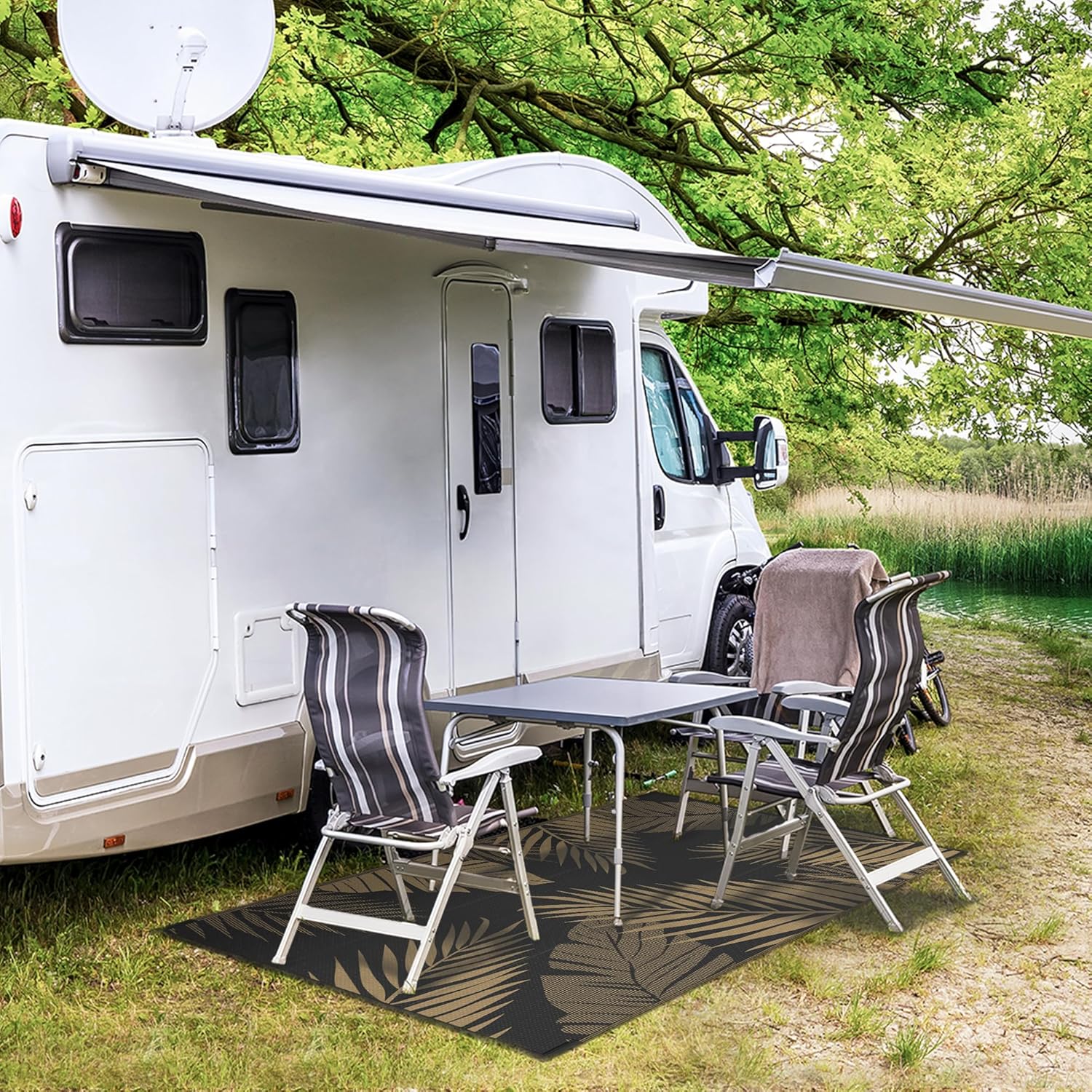 - Perfect Choice For RV Camping: Woven from lightweight plastic straws, these RV outdoor rugs fold compactly to fit in the included carry bag. This portable waterproof outdoor rug is easy to carry, with 4 corner loops and stakes to secure it. Using this camper rug reduces travel fatigue and adds plenty of space for fun โ also a stylish touch for fall decor when setting up your campsite