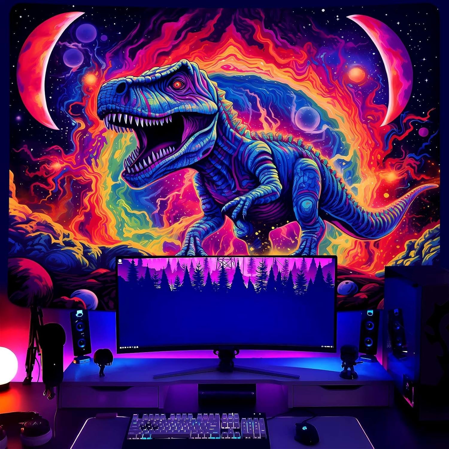 - NOT JUST FLUORESCENT TAPESTRY: Black light dinosaur poster can also be used as party decorations, perfect gift, wall covering, photo backdrops, and even as room dividers. It has the decorative function of a poster but is more durable than a poster