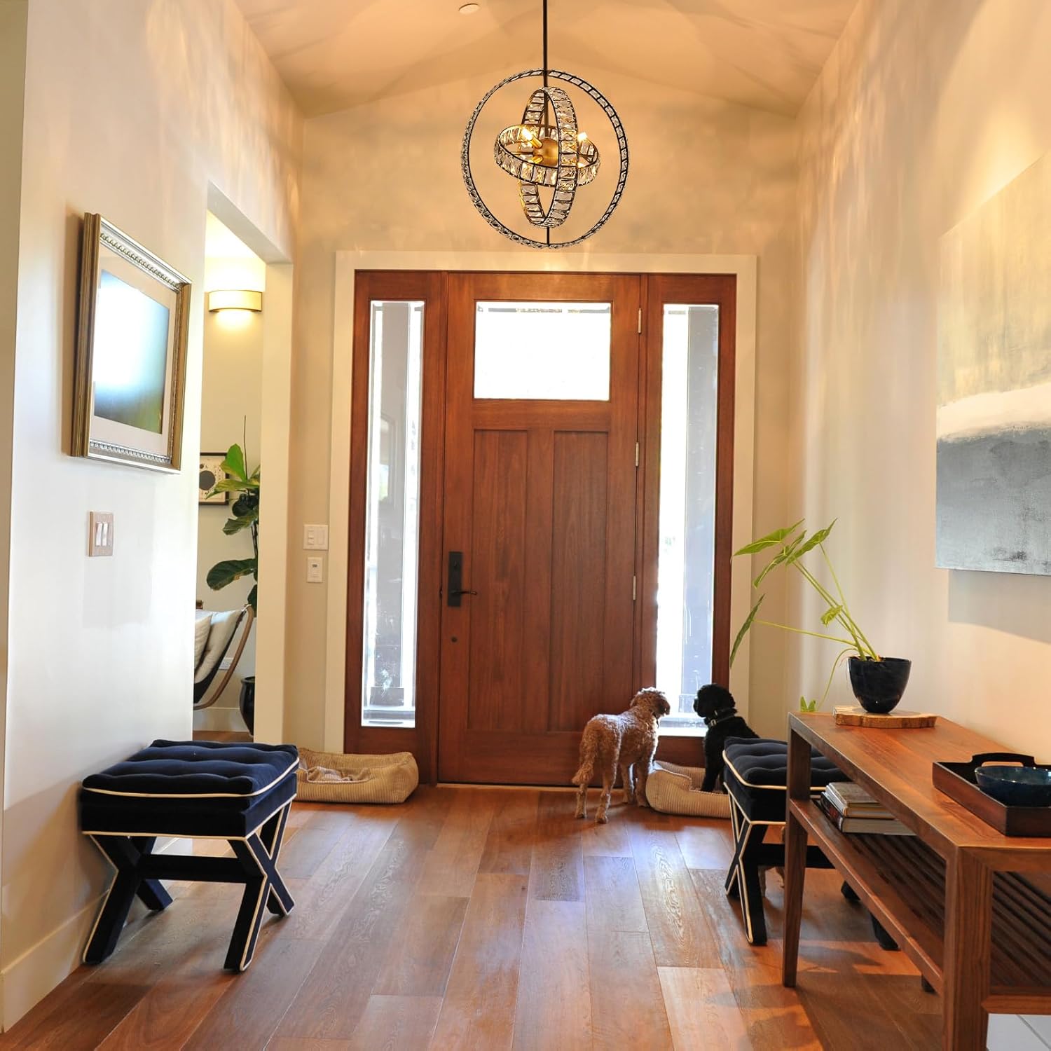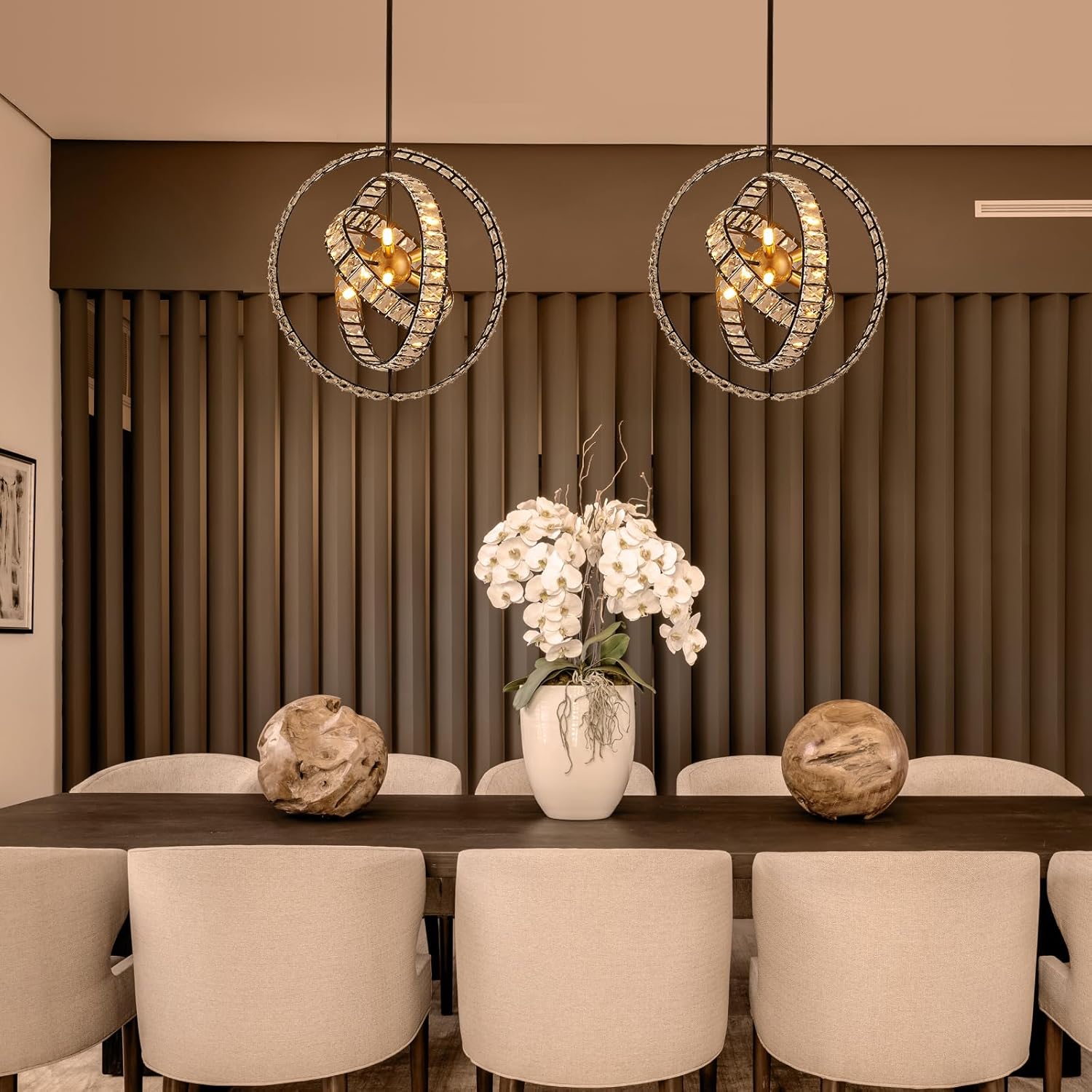 - 【Unique Design】Crystal globe sputnik chandelier with adjustable round shade, by rotating the circle, you will get round chandeliers of different shapes; turn on the lamp, there will be beautiful sparkling light effects; suitable for living room, dining room, hallway, bedroom, kitchen island, etc.
