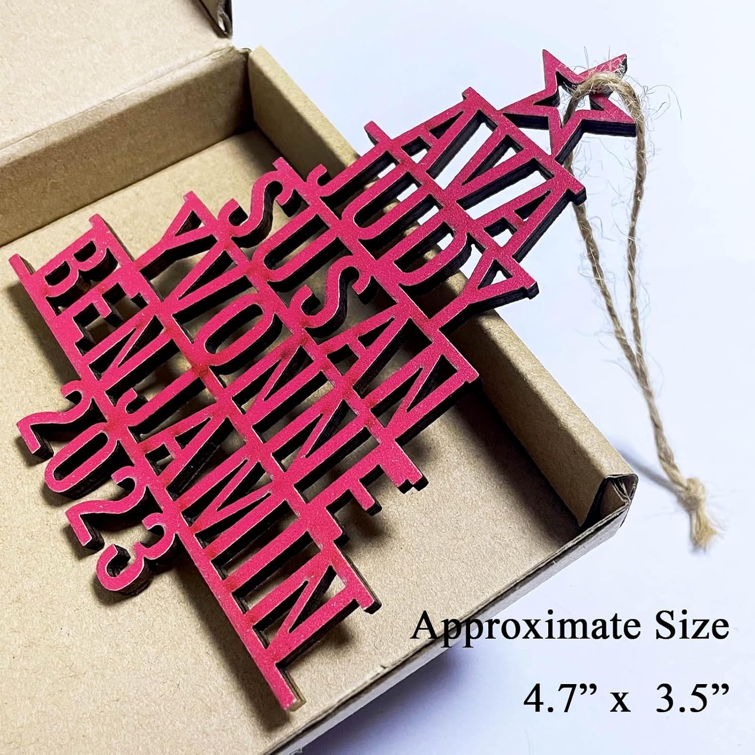 - Perfect Size And Easy To Hang-Measuring at 5.9" x 3.9"๏ผthis ornament is the ideal size to adorn your Christmas tree. PS:The name will be rearranged from longest to shortest to make the Christmas tree shap.