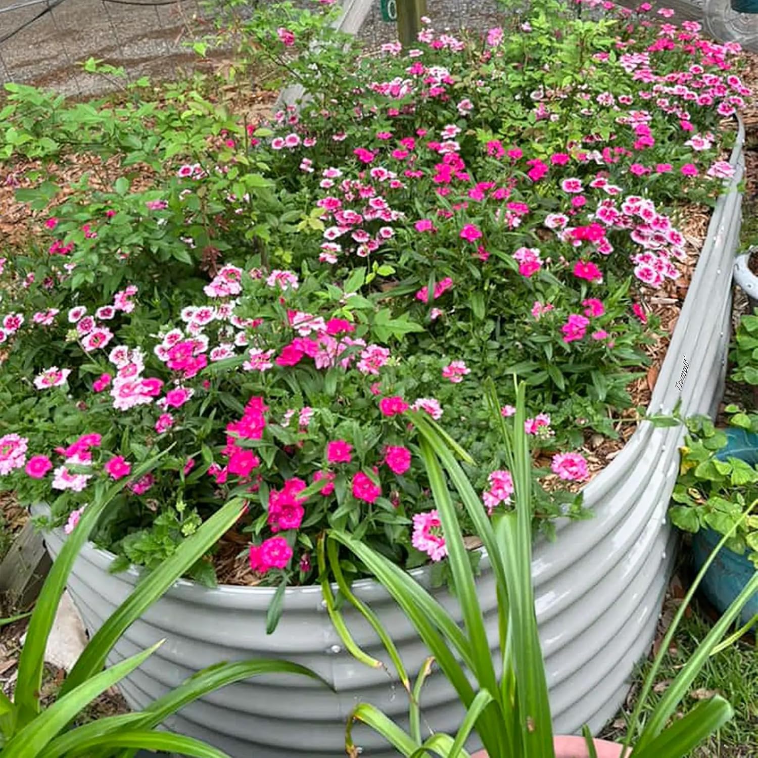 - 【Safety Features】①Anti-rust Coating, do not contaminate soil, safe for plants and humans; ②Oval shape, the raised planter box has rounded corner; ③Thickened crimped edge design, no sharp edges, smooth to the touch; ④ Gloves included; will not hurt your hand when installing or planting