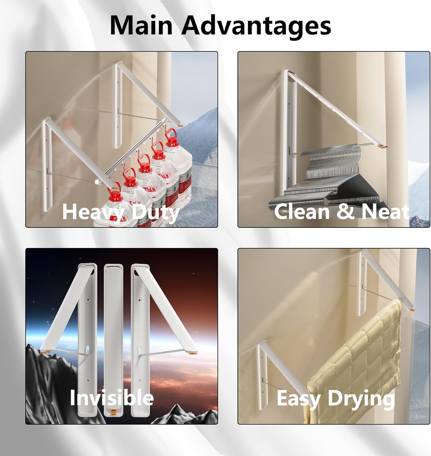 - ăEasy to Installă: Our package of clothe drying rack wall mounted comes with screw way to install. If you have any questions about the clothe racks for drying clothes, please contact us and get satisfied service.