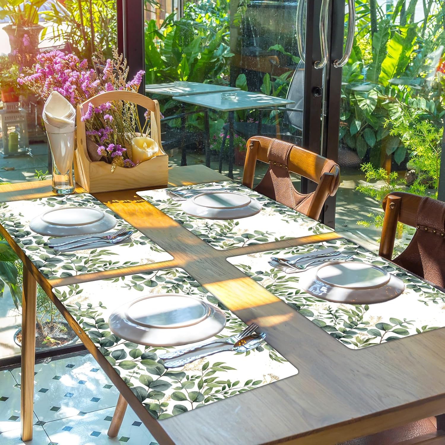 Eucalyptus Leaves Placemat Set of 6 Seasonal Summer Plastic Table Mats Spring Green Leaves Themed Place Mats Rustic Vintage Table Decoration for Indoor Outdoor Party Kitchen Dining
