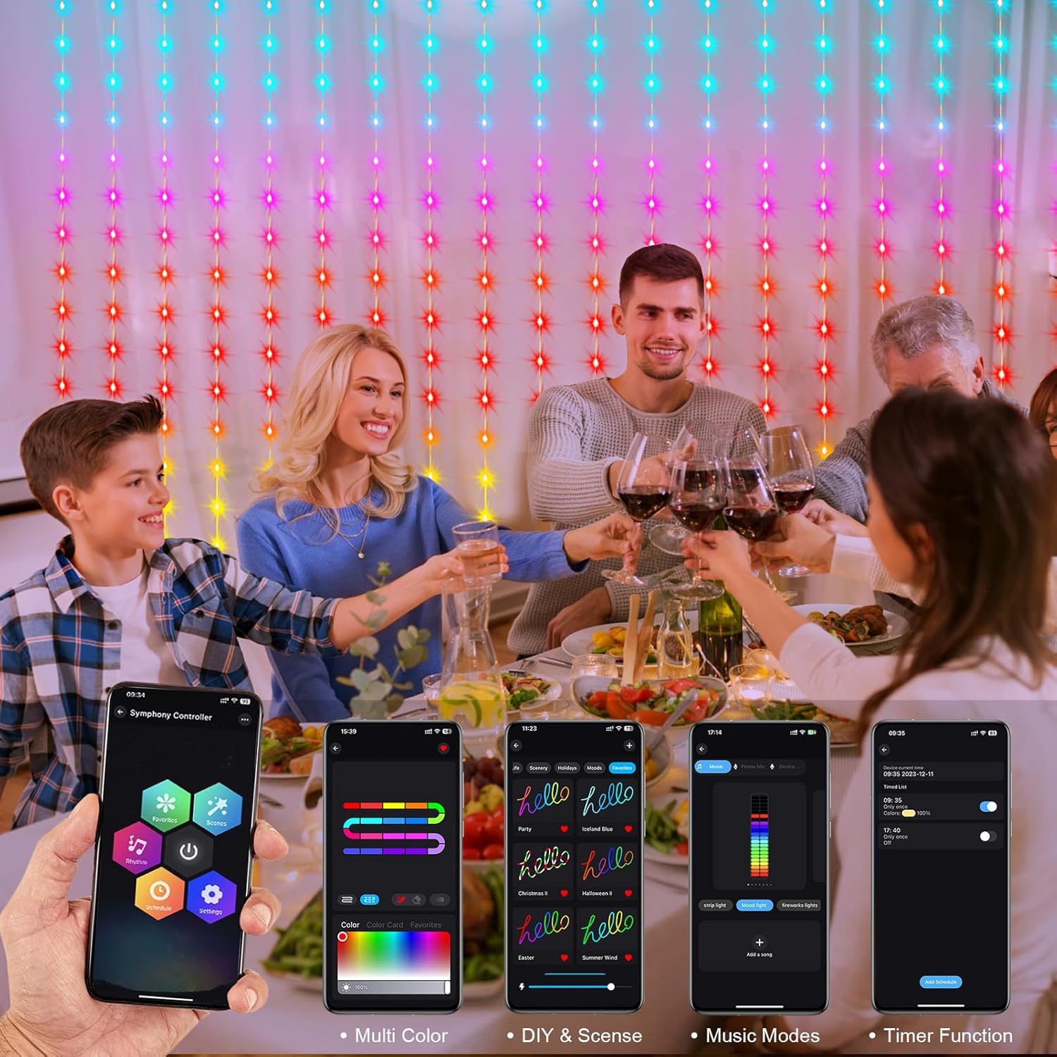 - Stunning 16 Million Colors: Transform any space with vibrant, dynamic lighting! Featuring 300 energy-efficient LEDs, these curtain lights offer 16 million color options to create the perfect ambiance