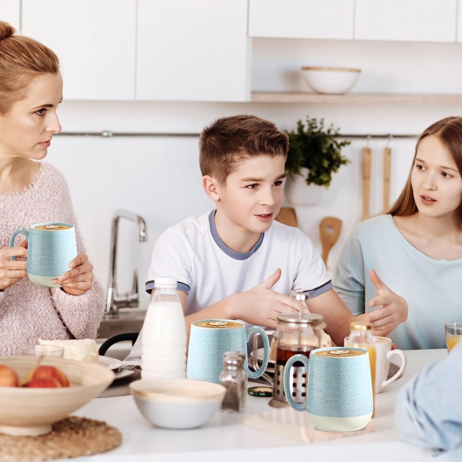 Hasense Ceramic Coffee Mugs, 15 Oz Coffee Cup with Handle Set of 4, Large Coffee Mug for Men, Modern Latte Cup for Cappuccino, Tea, Cocoa, Microwave & Dishwasher Safe, Birthday Gift, Light Blue
