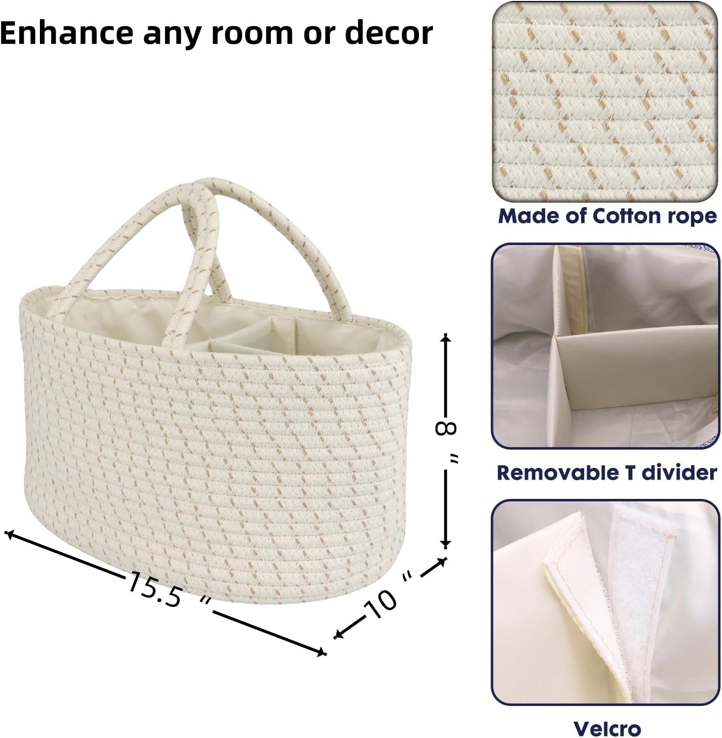 - Flexible and Portable Diaper basket with removable divider: Featuring handles for effortless transportation, our diaper change caddy includes removable dividers for personalized organization. Adjust the internal layout as needed to accommodate various baby items. Move seamlessly from room to room or take diaper organizer caddy on the go for convenient access to baby essentials.