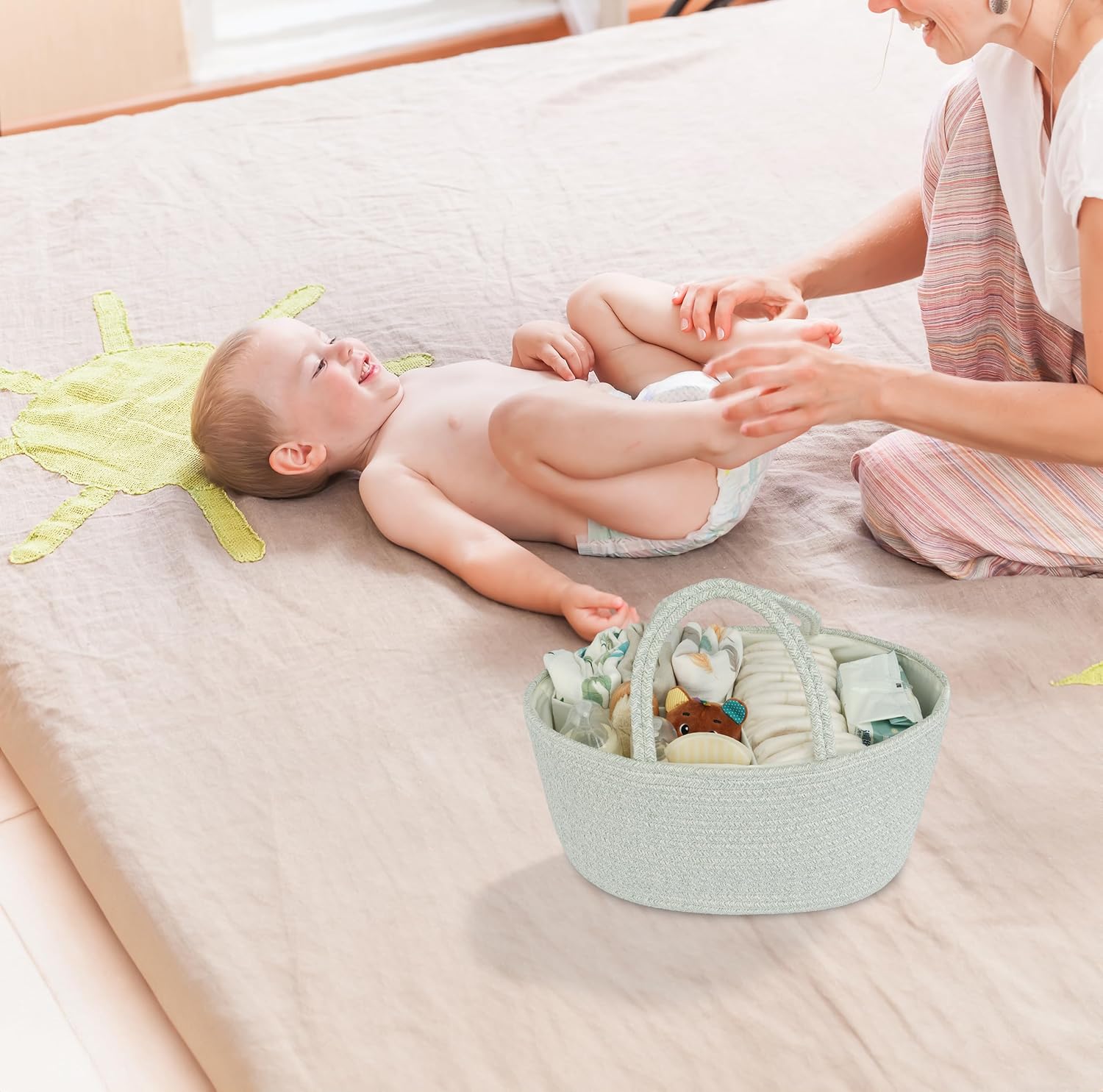 Diaper Caddy Organizer Cotton Rope Baby Basket Nursery Storage and Portable Tote Bag for Car Ideal Baby Shower Gifts and Registry Must-Have for Newborn Essentials Large light green